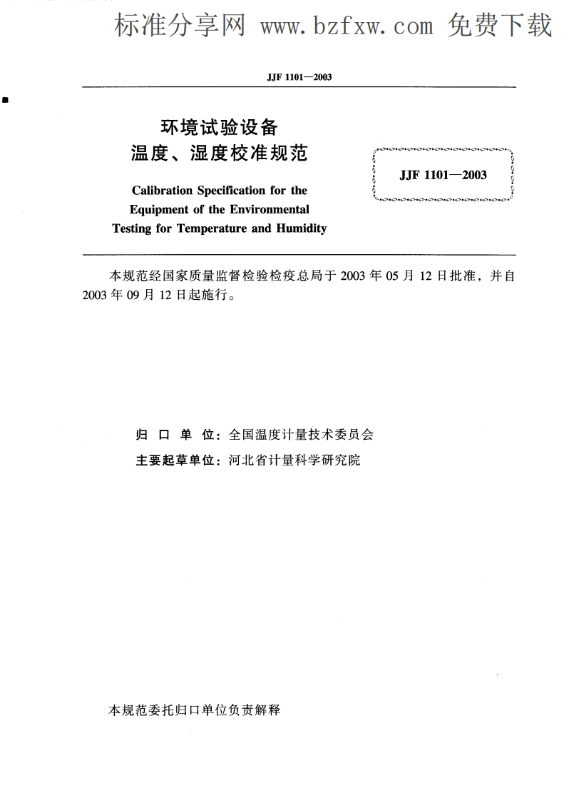 JJF1101-2003环境试验设备温度、湿度校准规范348072@abc4个月前发布关注私信0.61MB20页049JJF1101-2003环境试验设备温度、湿度校准规范此内容为付费资源,请付费后查看¥16¥23黄金会员免费钻石会员免费立即购买您当前未登录!建议登陆后购买,可保存购买订单付费资源 第1页 / 共20页 第2页 / 共20页 试读已结束,还剩18页,您可下载完整版后进行离线阅读 THE END标准规范 文本预览 可可F中华人民共和国国家计量技术规范JJF1101-2003环境试验设备温度、湿度校准规范Calibration Specification for the Equipment of theEnvironmental Testing for Temperature and Humidity2003-05-12发布2003-09-12实施国家质量监督检验检疫总局发布 查看更多 收起部分 喜欢就支持一下吧收藏