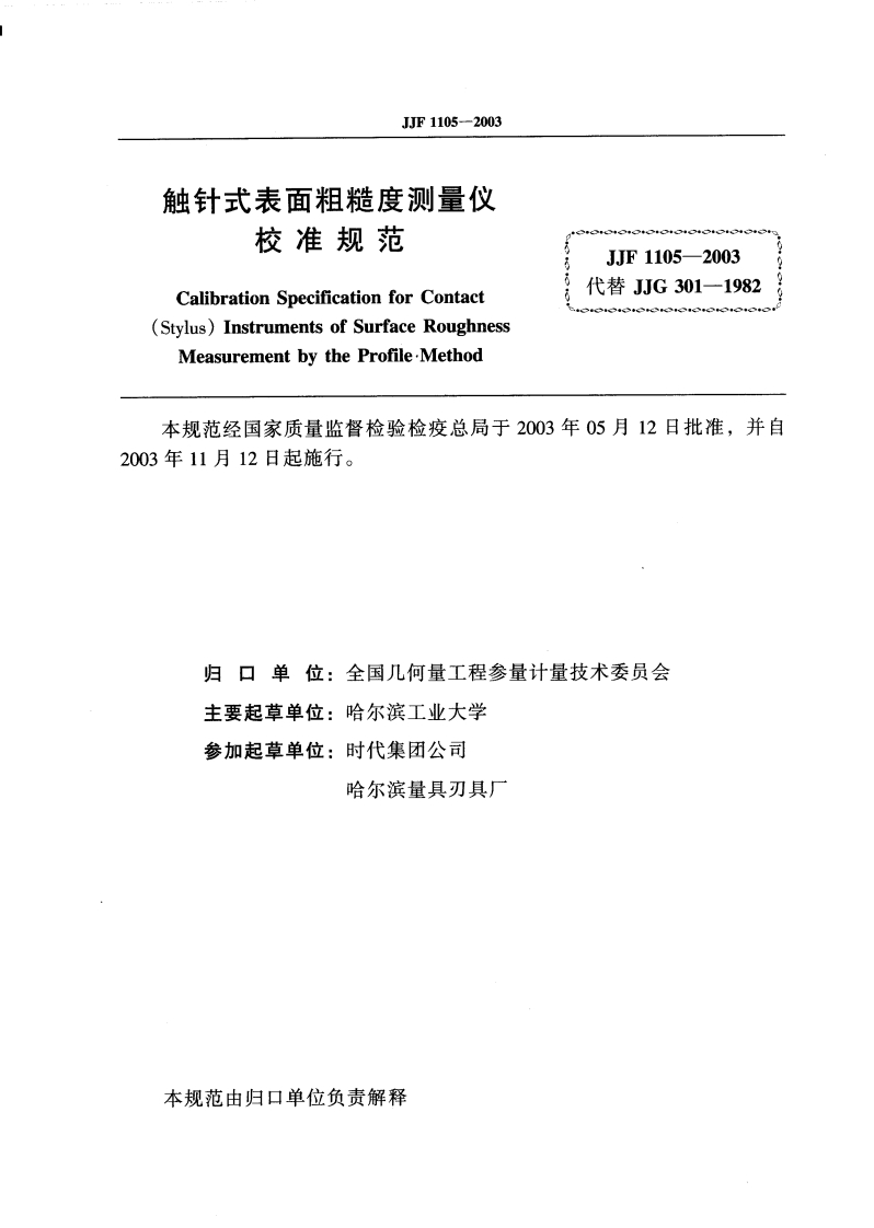 JJF1105-2003触针式表面粗糙度测量仪校准规范348072@abc4个月前发布关注私信0.66MB20页028JJF1105-2003触针式表面粗糙度测量仪校准规范此内容为付费资源,请付费后查看¥16¥23黄金会员免费钻石会员免费立即购买您当前未登录!建议登陆后购买,可保存购买订单付费资源 第1页 / 共20页 第2页 / 共20页 试读已结束,还剩18页,您可下载完整版后进行离线阅读 THE END标准规范 文本预览 可可月中华人民共和国国家计量技术规范JJF1105一2003触针式表面粗糙度测量仪校准规范Calibration Specification for Contact (Stylus)Instruments ofSurface Roughness Measurement by the Profile Method2003-05-12发布2003-11-12实施国家质量监督检验检疫总局发布 查看更多 收起部分 喜欢就支持一下吧收藏