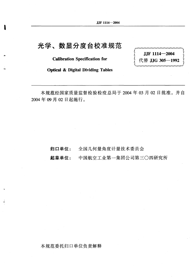 JJF1114-2004光学、数显分度台校准规范348072@abc4个月前发布关注私信0.54MB18页024JJF1114-2004光学、数显分度台校准规范此内容为付费资源,请付费后查看¥16¥23黄金会员免费钻石会员免费立即购买您当前未登录!建议登陆后购买,可保存购买订单付费资源 第1页 / 共18页 第2页 / 共18页 试读已结束,还剩16页,您可下载完整版后进行离线阅读 THE END标准规范 文本预览 月中华人民共和国国家计量技术规范JJF1114-2004光学、数显分度台校准规范Calibration Specification for Optical Digital Dividing Tables2004-03-02发布2004-09-02实施国家质量监督检验检疫总局发布 查看更多 收起部分 喜欢就支持一下吧收藏