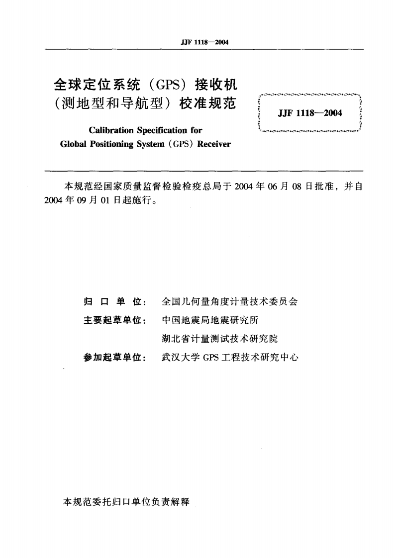 JJF1118-2004全球定位系统(GPS)接收机(侧地型和导航型)校准规范348072@abc4个月前发布关注私信0.29MB13页047JJF1118-2004全球定位系统(GPS)接收机(侧地型和导航型)校准规范此内容为付费资源,请付费后查看¥16¥23黄金会员免费钻石会员免费立即购买您当前未登录!建议登陆后购买,可保存购买订单付费资源 第1页 / 共13页 第2页 / 共13页 试读已结束,还剩11页,您可下载完整版后进行离线阅读 THE END标准规范 文本预览 可可月中华人民共和国国家计量技术规范JJF1118-2004全球定位系统(GPS)接收机(测地型和导航型)校准规范Calibration Specification for GlobalPositioning System (GPS)Receiver2004-06-08发布2004-09-01实施国家质量监督检验检疫总局发布 查看更多 收起部分 喜欢就支持一下吧收藏