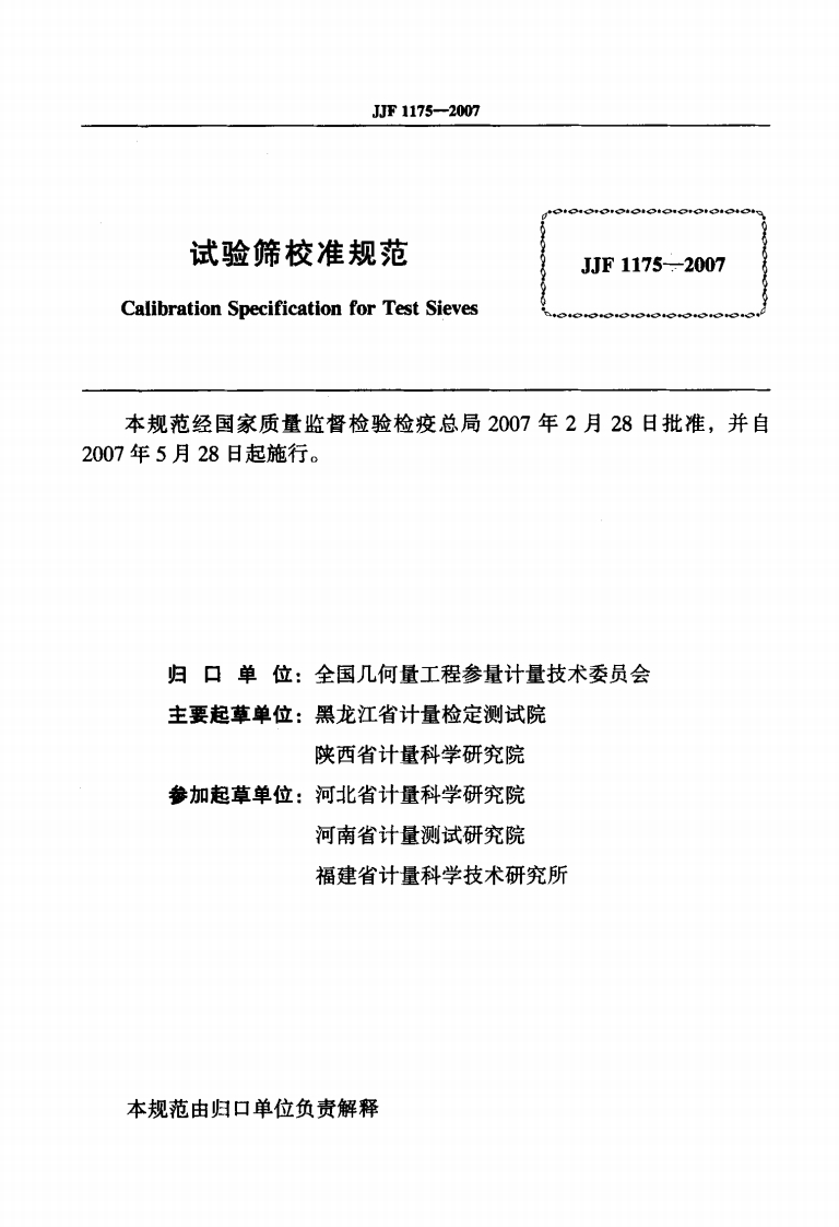 JJF1175-2007试验筛校准规范(1)348072@abc4个月前发布关注私信0.38MB19页027JJF1175-2007试验筛校准规范(1)此内容为付费资源,请付费后查看¥16¥23黄金会员免费钻石会员免费立即购买您当前未登录!建议登陆后购买,可保存购买订单付费资源 第1页 / 共19页 第2页 / 共19页 试读已结束,还剩17页,您可下载完整版后进行离线阅读 THE END标准规范 文本预览 可可月中华人民共和国国家计量技术规范JJF1175一2007试验筛校准规范Calibration Specification for Test Sieves2007-02-28发布2007-05-28实施国家质量监督检验检疫总局发布 查看更多 收起部分 喜欢就支持一下吧收藏
