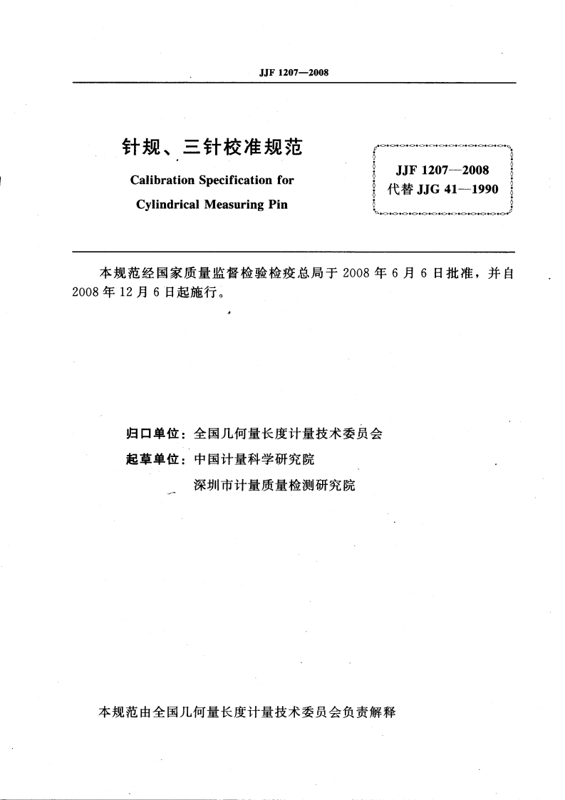 JJF1207-2008针规、三针校准规范348072@abc4个月前发布关注私信7.92MB16页020JJF1207-2008针规、三针校准规范此内容为付费资源,请付费后查看¥16¥23黄金会员免费钻石会员免费立即购买您当前未登录!建议登陆后购买,可保存购买订单付费资源 第1页 / 共16页 第2页 / 共16页 试读已结束,还剩14页,您可下载完整版后进行离线阅读 THE END标准规范 文本预览 可F中华人民共和国国家计量技术规范JJF1207一2008针规、三针校准规范Calibration Specification for Cylindrical Measuring Pin2008-06-06发布2008-12-06实施国家质量监督检验检疫总局发布 查看更多 收起部分 喜欢就支持一下吧收藏