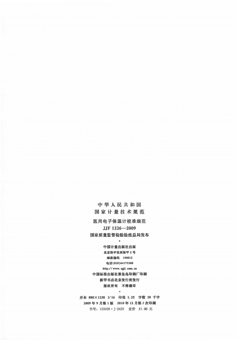 JJF1226-2009348072@abc4个月前发布关注私信2.24MB19页033JJF1226-2009此内容为付费资源,请付费后查看¥16¥23黄金会员免费钻石会员免费立即购买您当前未登录!建议登陆后购买,可保存购买订单付费资源 第1页 / 共19页 第2页 / 共19页 试读已结束,还剩17页,您可下载完整版后进行离线阅读 THE END标准规范 文本预览 可可F中华人民共和国国家计量技术规范JJF1226-2009医用电子体温计校准规范Calibration Specification of the Clinical Electronic Thermometer2009-07-10发布2009-10-10实施国家质量监督检验检疫总局发布 查看更多 收起部分 喜欢就支持一下吧收藏