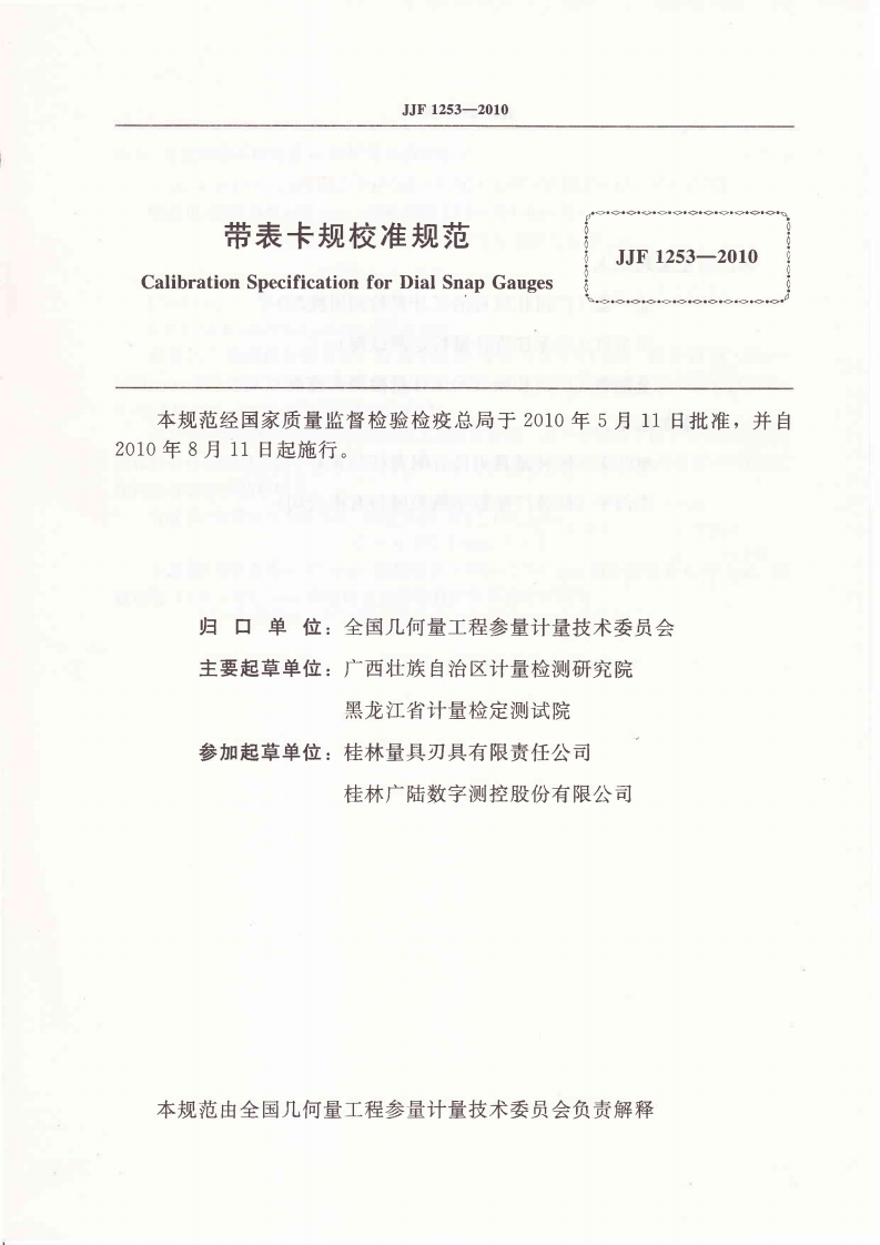 JJF1253-2010带表卡规校准规范348072@abc4个月前发布关注私信0.71MB12页044JJF1253-2010带表卡规校准规范此内容为付费资源,请付费后查看¥16¥23黄金会员免费钻石会员免费立即购买您当前未登录!建议登陆后购买,可保存购买订单付费资源 第1页 / 共12页 第2页 / 共12页 试读已结束,还剩10页,您可下载完整版后进行离线阅读 THE END标准规范 文本预览 可可手中华人民共和国国家计量技术规范JJF1253-2010带表卡规校准规范Calibration Specification for Dial Snap Gauges2010-05-11发布2010-08-11实施国家质量监督检验检疫总局发布 查看更多 收起部分 喜欢就支持一下吧收藏