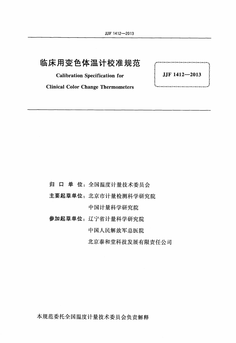 JJF1412-2013348072@abc4个月前发布关注私信0.75MB17页034JJF1412-2013此内容为付费资源,请付费后查看¥16¥23黄金会员免费钻石会员免费立即购买您当前未登录!建议登陆后购买,可保存购买订单付费资源 第1页 / 共17页 第2页 / 共17页 试读已结束,还剩15页,您可下载完整版后进行离线阅读 THE END标准规范 文本预览 可年中华人民共和国国家计量技术规范JJF1412-2013临床用变色体温计校准规范Calibration Specification for Clinical Color Change Thermometers2013-06-27发布2013-09-27实施国家质量监督检验检疫总局发布 查看更多 收起部分 喜欢就支持一下吧收藏