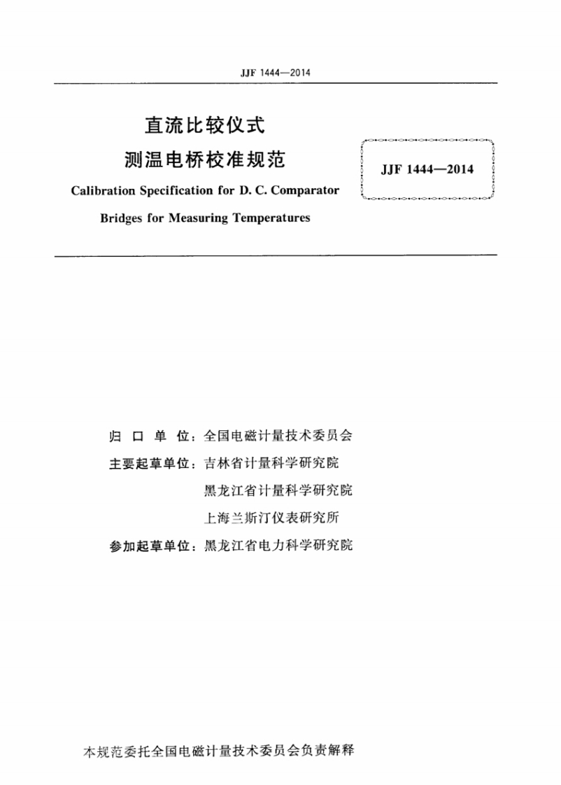 JJF1444-2014直流比较仪式测温电桥校准规范348072@abc4个月前发布关注私信5.68MB26页042JJF1444-2014直流比较仪式测温电桥校准规范此内容为付费资源,请付费后查看¥16¥23黄金会员免费钻石会员免费立即购买您当前未登录!建议登陆后购买,可保存购买订单付费资源 第1页 / 共26页 第2页 / 共26页 试读已结束,还剩24页,您可下载完整版后进行离线阅读 THE END标准规范 文本预览 可可F中华人民共和国国家计量技术规范JJF1444-2014直流比较仪式测温电桥校准规范Calibration Specification forD.C.Comparator Bridges for Measuring Temperatures2014-01-23发布2014-04-23实施国家质量监督检验检疫总局发布 查看更多 收起部分 喜欢就支持一下吧收藏