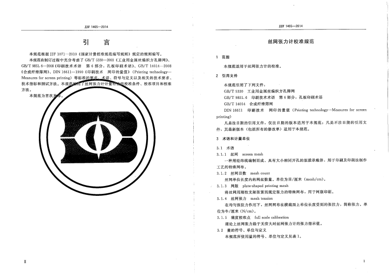 F165一2014里145-2014目录引言19…(I》木规范主要起草人:】花围…蒋晓波(浙江省计量科学研究院)2引用文件m3术语和计量单位倪守忠(浙江省计量科学研究院)3.】术话am9171t444444445(1)杨建文(广东省计量科学研究院】3.2量的符号、单位与定义一参加起草人:5计量特性虞跃议(上海市计量测试技术研究旋)6.】3环境条件444m1一《2)许光〔安徽省计量科学研究院)62校准用标准装置4 1…(2)张熬〔上海且图计量测试技术有限公司)7校准项日有校准方法…(3)7.】整准前检瓷**一T.2校准方法11m-atatate44t4t4s1tn《3)8校结果表达mm-…4an《4】9复校时间间隔41附录A丝网张力计校准记录nm一一一一(5)附深B丝网张力计示值谈差测量站梨不请定度浮定方法及奖例一一一一“(6)需录C丝网张力标准装置张力不晴定度评定方法及实例一…(10)用录D一种具裂的经网张力标常装置示复图mmn…(们3)