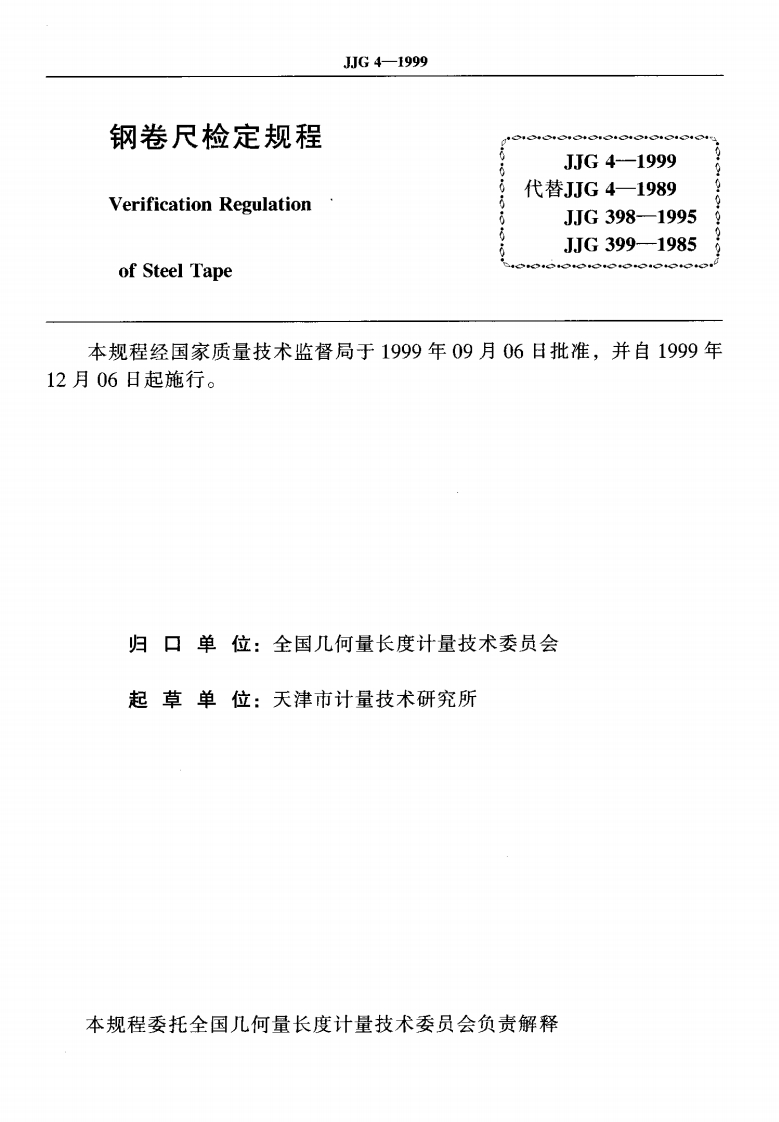 JJG4-1999钢卷尺348072@abc4个月前发布关注私信0.22MB10页039JJG4-1999钢卷尺此内容为付费资源,请付费后查看¥16¥23黄金会员免费钻石会员免费立即购买您当前未登录!建议登陆后购买,可保存购买订单付费资源 第1页 / 共10页 第2页 / 共10页 试读已结束,还剩8页,您可下载完整版后进行离线阅读 THE END标准规范 文本预览 可G中华人民共和国国家计量检定规程JJG4一1999钢卷尺Steel Tape1999-09-06发布1999-12-06实施国家质量技术监督局发布 查看更多 收起部分 喜欢就支持一下吧收藏