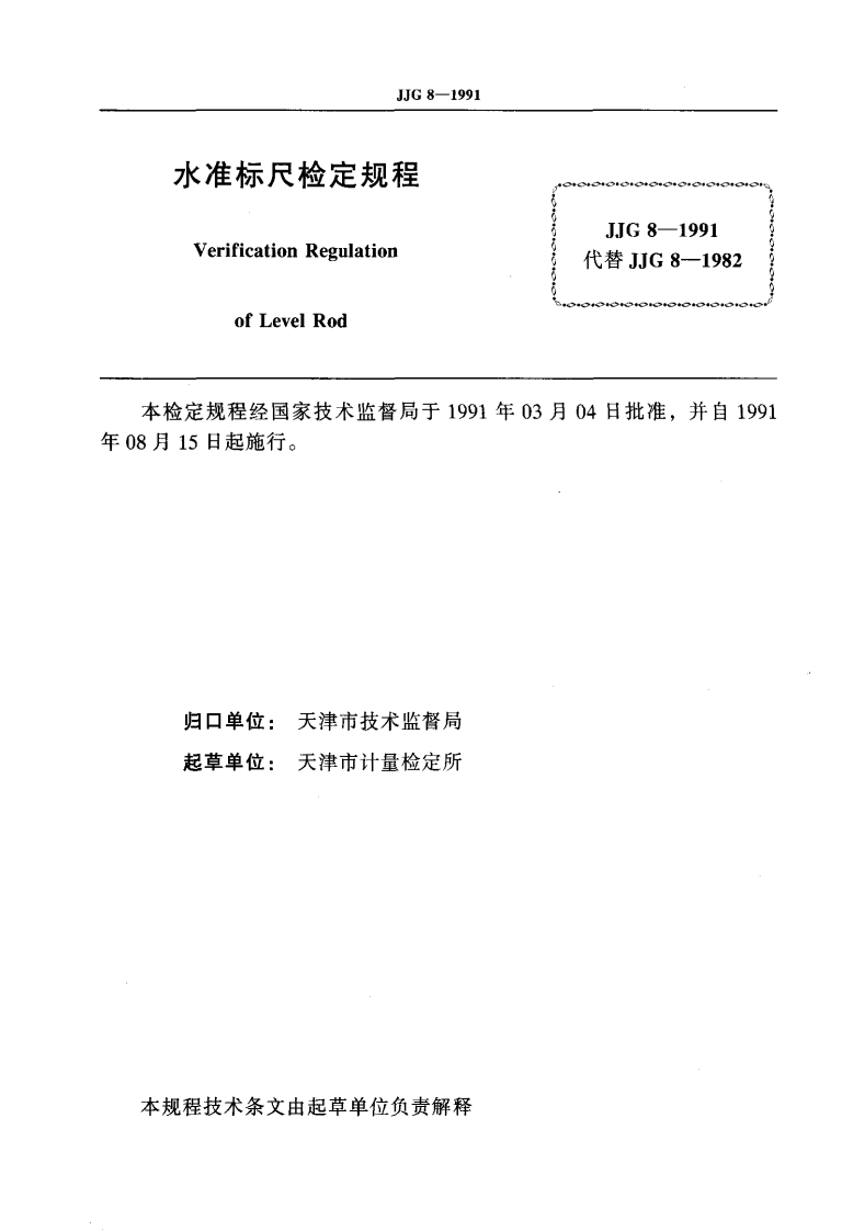 JJG8-1991水准标尺348072@abc2个月前发布关注私信0.50MB25页0445JJG8-1991水准标尺此内容为付费资源,请付费后查看¥16¥23黄金会员免费钻石会员免费立即购买您当前未登录!建议登陆后购买,可保存购买订单付费资源 第1页 / 共25页 第2页 / 共25页 试读已结束,还剩23页,您可下载完整版后进行离线阅读 © 版权声明文章版权归作者所有,未经允许请勿转载。THE END标准规范 文本预览 J可G中华人民共和国国家计量检定规程JJG8-1991水准标尺Level Rod1991-03-04发布1991-08-15实施国家技术监督局发布 查看更多 收起部分 喜欢就支持一下吧点赞5 分享QQ空间微博QQ好友海报分享复制链接收藏
