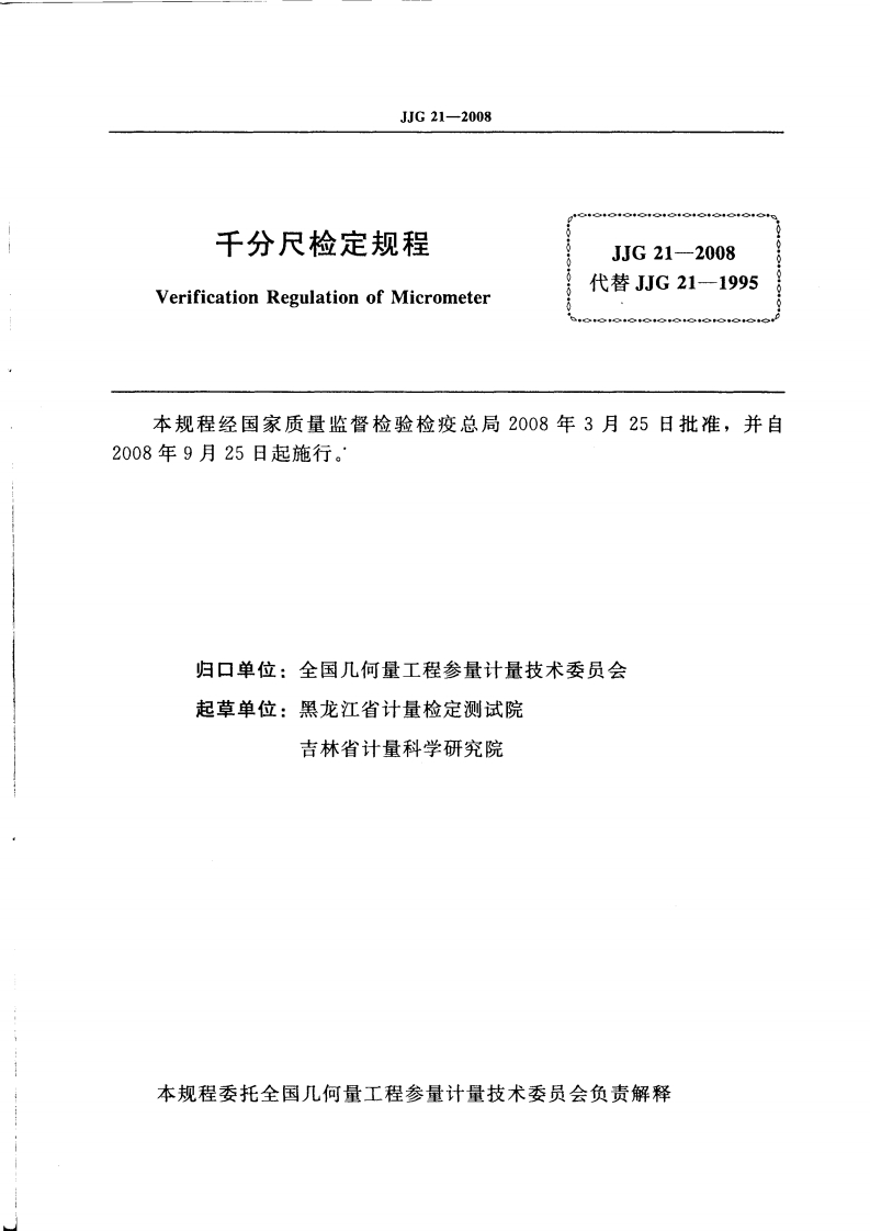 JJG21-2008千分尺348072@abc2个月前发布关注私信0.93MB25页02015JJG21-2008千分尺此内容为付费资源,请付费后查看¥16¥23黄金会员免费钻石会员免费立即购买您当前未登录!建议登陆后购买,可保存购买订单付费资源 第1页 / 共25页 第2页 / 共25页 试读已结束,还剩23页,您可下载完整版后进行离线阅读 © 版权声明文章版权归作者所有,未经允许请勿转载。THE END标准规范 文本预览 可可G中华人民共和国国家计量检定规程JJG21-2008千分尺Micrometer2008-03-25发布2008-09-25实施国家质量监督检验检疫总局发布 查看更多 收起部分 喜欢就支持一下吧点赞15 分享QQ空间微博QQ好友海报分享复制链接收藏