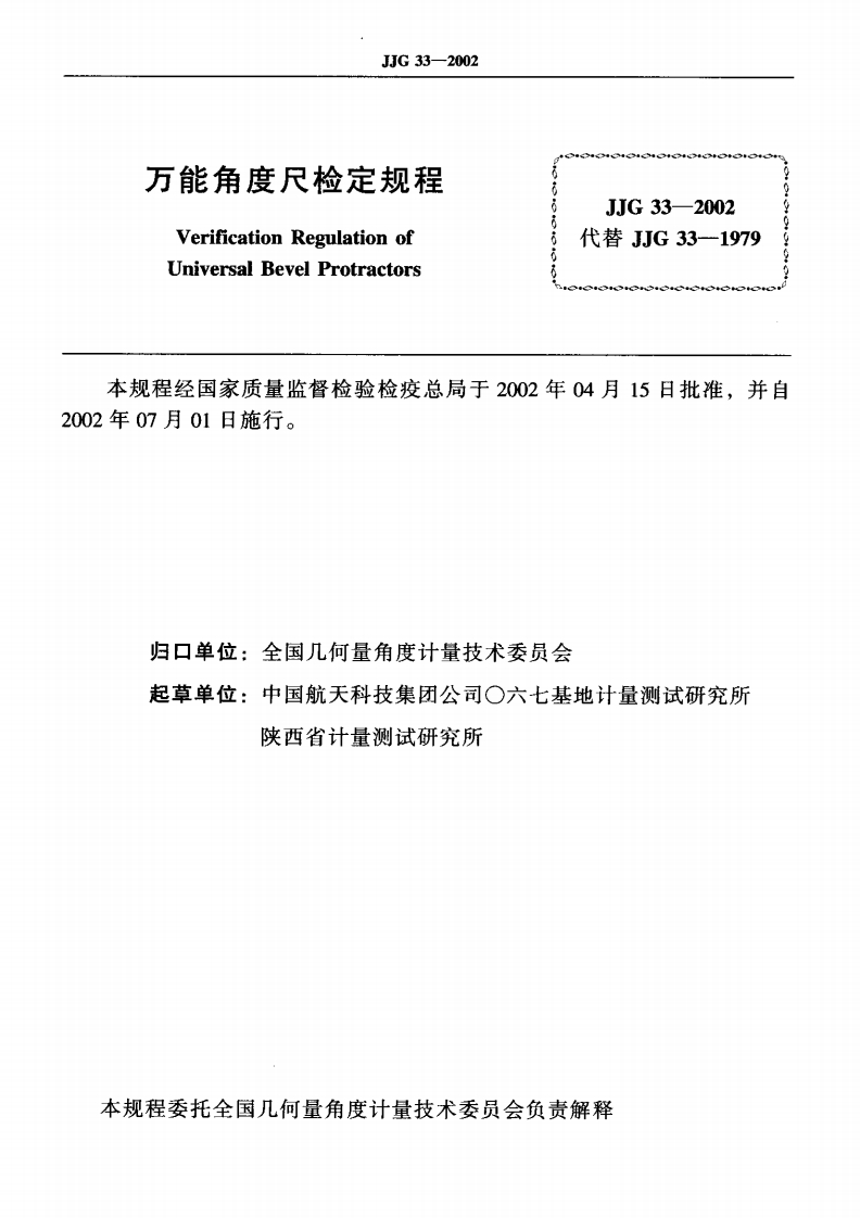 JJG33-2002万能角度尺348072@abc4个月前发布关注私信0.19MB9页039JJG33-2002万能角度尺此内容为付费资源,请付费后查看¥16¥23黄金会员免费钻石会员免费立即购买您当前未登录!建议登陆后购买,可保存购买订单付费资源 第1页 / 共9页 第2页 / 共9页 试读已结束,还剩7页,您可下载完整版后进行离线阅读 THE END标准规范 文本预览 刘可中华人民共和国国家计量检定规程JJG33一2002万能角度尺Universal Bevel Protractors2002-04-15发布2002-07-01实施国家质量监督检验检疫总局发布 查看更多 收起部分 喜欢就支持一下吧收藏