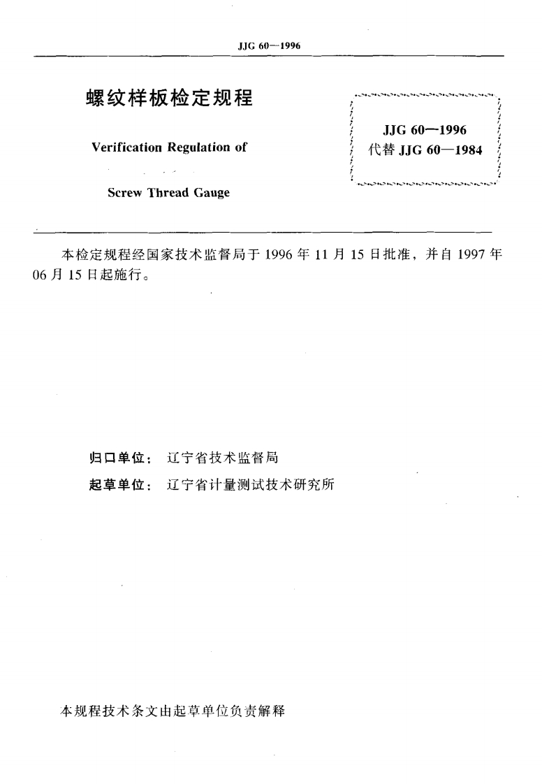 JJG60-1996螺纹样板检定规程348072@abc4个月前发布关注私信0.13MB9页025JJG60-1996螺纹样板检定规程此内容为付费资源,请付费后查看¥16¥23黄金会员免费钻石会员免费立即购买您当前未登录!建议登陆后购买,可保存购买订单付费资源 第1页 / 共9页 第2页 / 共9页 试读已结束,还剩7页,您可下载完整版后进行离线阅读 THE END标准规范 文本预览 可可G中华人民共和国国家计量检定规程JJG60一1996螺纹样板Screw Thread Gauge1996-11-15发布1997-06-15实施国家技术监督局发布 查看更多 收起部分 喜欢就支持一下吧收藏