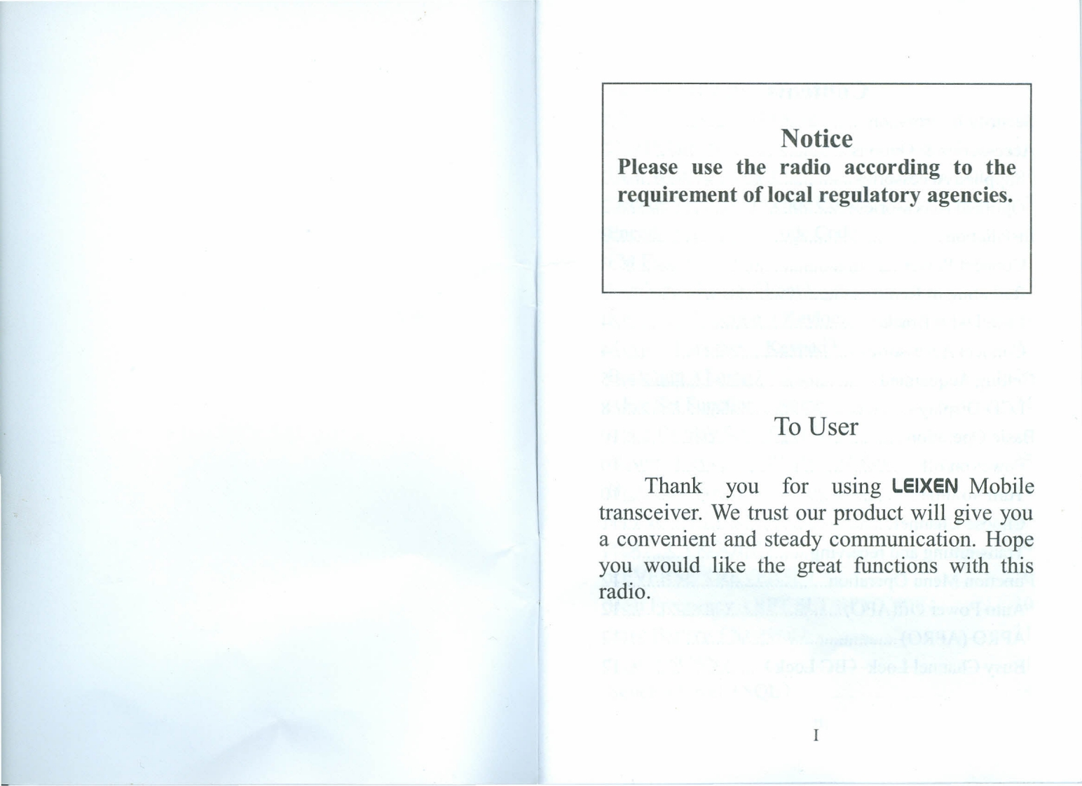 Leixen_VV898_Manual操作说明书手册348072@abc前天发布关注私信12.09MB30页023Leixen_VV898_Manual操作说明书手册此内容为付费资源,请付费后查看¥29¥39黄金会员免费钻石会员免费立即购买您当前未登录!建议登陆后购买,可保存购买订单付费资源 第1页 / 共30页 第2页 / 共30页 试读已结束,还剩28页,您可下载完整版后进行离线阅读 THE END无线电 文本预览 LEIXEN雷讯Professional Two-Way RadioVV-898无线车载台。MOBILE TRANSCEIVERLEIXENCHA+t81年4,9937VOL+CHA-s489199风N★VOL-MP1 P2 P3VW-898用户手册User Manual 查看更多 收起部分 喜欢就支持一下吧收藏