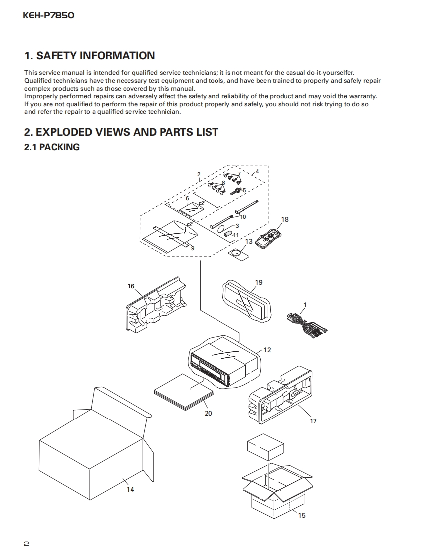 ServiceManualORDER NO.百回四000000回mICRT2307MULTI-CD CONTROL HIGH POWER CASSETTE PLAYER WITH FM/AM TUNERKEH-P7850X1N/ESNOTE:See the separate manual CX-631(CRT1640)for the cassette mechanism description.O The cassette mechanism assy employed in this model is one of 2L series.Dolby noise reduction manufactured under license from Dolby Laboratories Licensing Corporation."Dolby"and the double-D symbol are trademarks of Dolby Laboratories Licensing Corporation.CONTENTS1.SAFETY INFORMATION......7.GENERAL INFORMATION.382.EXPLODED VIEWS AND PARTS LIST...........7.1PARTS383.SCHEMATIC DIAGRAM...107.1.11C…384.PCB CONNECTION DIAGRAM....207.1.2 DISPLAY..435.ELECTRICAL PARTS LIST......307.2 DIAGNOSIS...........446.ADJUSTMENT..367.2.1 DISASSEMBLY.....447.2.2 TEST MODE457.3BLOCK DIAGRAM..488.OPERATIONS AND SPECIFICATIONS............49PIONEER ELECTRONIC CORPORATION 4-1,Meguro 1-Chome,Meguro-ku,Tokyo 153-8654,JapanPIONEER ELECTRONICS SERVICE INC.P.O.Box 1760,Long Beach,CA 90801-1760 U.S.A.PIONEER ELECTRONIC [EUROPE]N.V.Haven 1087 Keetberglaan 1,9120 Melsele,BelgiumPIONEER ELECTRONICS ASIACENTRE PTE.LTD.253 Alexandra Road,#04-01,Singapore 159936C PIONEER ELECTRONIC CORPORATION 1998K-ZZS.NOV.1998 Printed in Japan