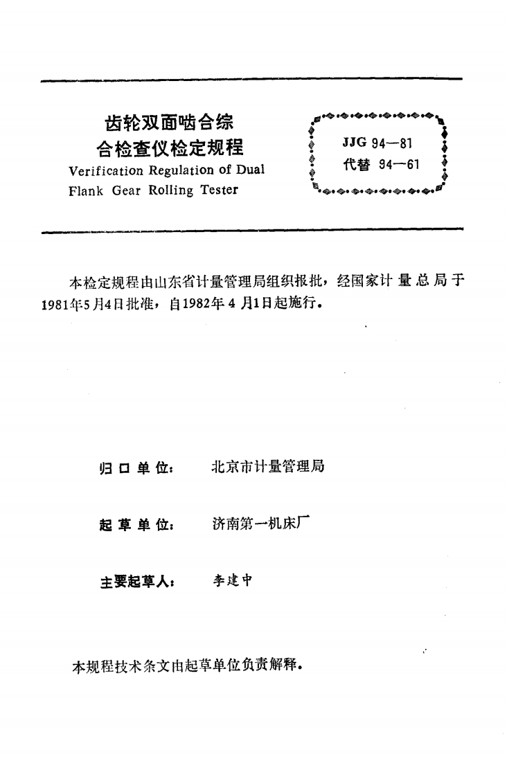 JJG94-1981齿轮双面啮合综合检查仪348072@abc4个月前发布关注私信0.44MB15页023JJG94-1981齿轮双面啮合综合检查仪此内容为付费资源,请付费后查看¥16¥23黄金会员免费钻石会员免费立即购买您当前未登录!建议登陆后购买,可保存购买订单付费资源 第1页 / 共15页 第2页 / 共15页 试读已结束,还剩13页,您可下载完整版后进行离线阅读 THE END标准规范 文本预览 中华人民共和国计量器具检定规程齿轮汉闻啮合综合检查仪JJG94-81国家计量总局北京 查看更多 收起部分 喜欢就支持一下吧收藏