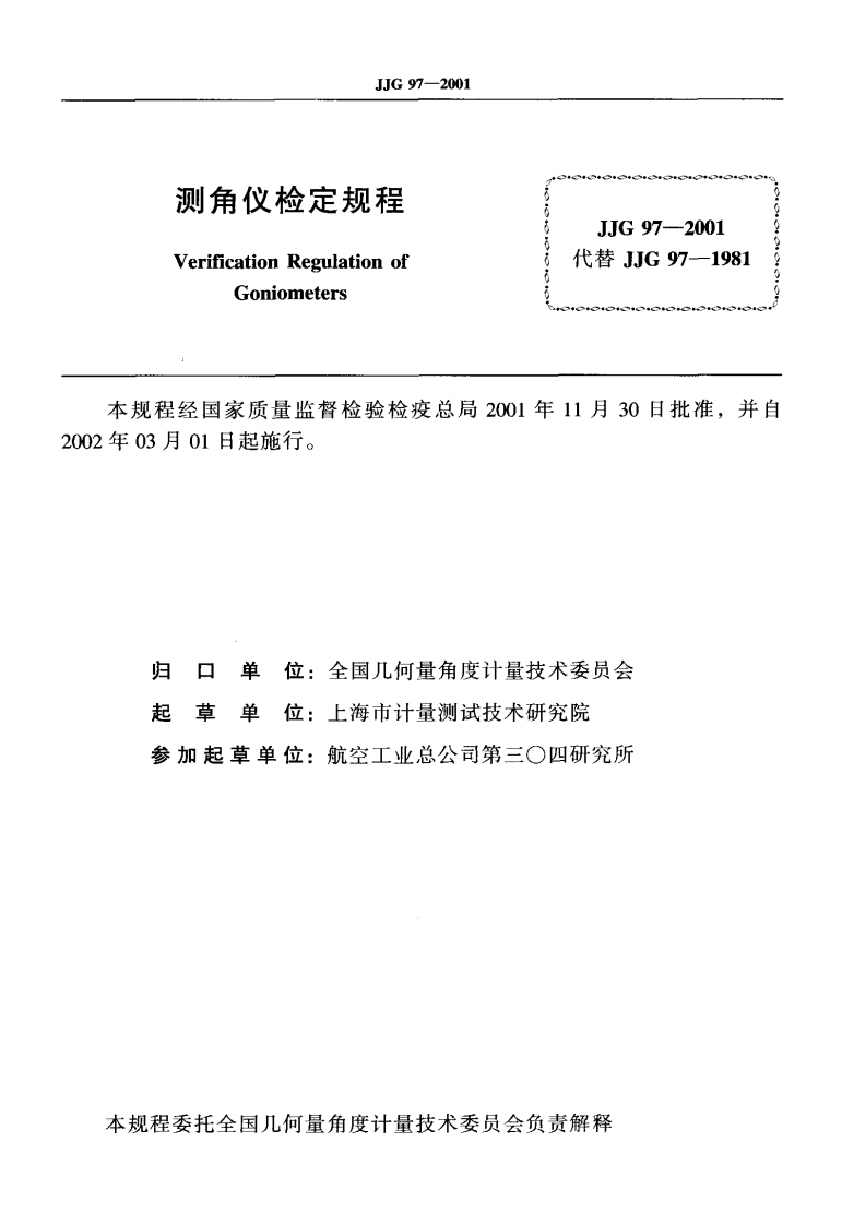 JJG97-2001测角仪348072@abc4个月前发布关注私信0.85MB32页024JJG97-2001测角仪此内容为付费资源,请付费后查看¥16¥23黄金会员免费钻石会员免费立即购买您当前未登录!建议登陆后购买,可保存购买订单付费资源 第1页 / 共32页 第2页 / 共32页 试读已结束,还剩30页,您可下载完整版后进行离线阅读 THE END标准规范 文本预览 可打G中华人民共和国国家计量检定规程JJG97一2001测角仪Goniometers2001-11-30发布2002-03-01实施国家质量监督检验检疫总局发布 查看更多 收起部分 喜欢就支持一下吧收藏