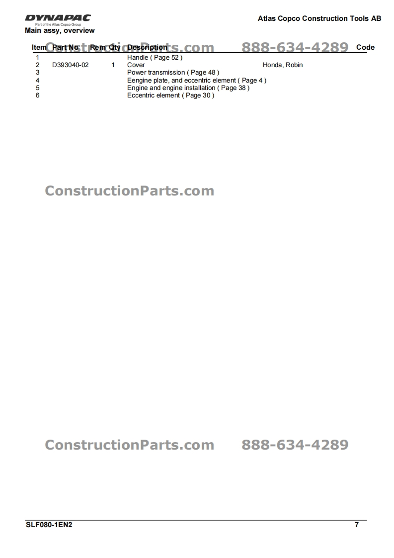DYNAPACAtlas Copco Construction Tools ABPart of the Atas Copco GroupMain assy,overview1862ConstructionParts.com888-634-4289ConstructionParts.comConstruction888-634-42896SLF080-1EN2