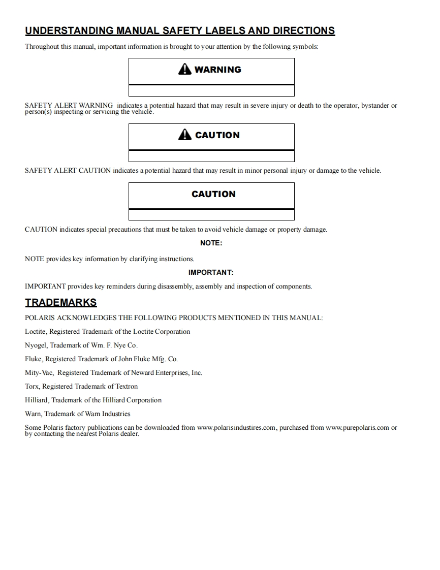 P米LARI5The Way Out.UNDERSTAND THE RIDING EXPERIENGE.LIvE THE RIDING EXPERIENCE.Work to make it better分PL点2008 SPORTSMAN X2 700 /800 EFL/800 TOURINGSERVICE MANUALFOREWORDThis service manual is designed primarily for use by certified Polaris Master Service Dealer technicians in a properlyequipped shop and should be kept available for reference.All references to left and right side of the vehicle are fromthe operator's perspective when seated in a normal riding position.Some procedures outlined in this manual require a sound knowledge of mechanical theory,tool use,and shopprocedures in order to perform the work safely and comrectly.Technicians should read the text and be familiar with serviceprocedures before starting the work.Certain procedures require the use of special tools.Use only the proper tools asspecified.Comments or suggestions about this manual may be directed to:Service Publications Dept.Polaris Sales Inc.2100Hwy 55 Medina Minnesota 55340.2008 Sportsman X2 700/800 EFI/800 Touring Service Manual PN 9921323Copyright 2007 Polaris Sales Inc.All information contained within this publication is based on the latest product information at the time of publication.Due to constant8R85bS88988Y88em89a05906品8e3g686t3e888%8黑8 inac0283re器gh86or reuse of the depictions and/or procedures contained within,whether whole or in part,is expressly prohibited.Printed in U.S.A.