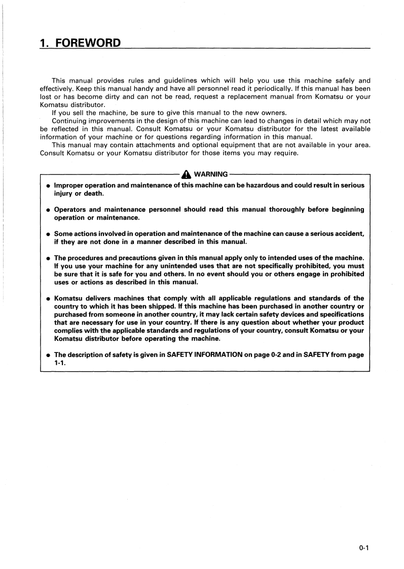 SEAM006600Operation MaintenanceManualP025-1P030-7P040-7PC45-1HYDRAULIC EXCAVATORSERIAL NUMBERS PC25-1 6471 and upPC30-7 26423 and upPC40-724522-24994PC45-1 3506 and upThis material is proprietary to Komatsu America International Company and is not to be reproduced,used,ordisclosed except in accordance with written authorization from Komatsu America International Company.It is our policy to improve our products whenever it is possible and practical to do so.We reserve the right tomake changes or improvements at any time without incurring any obligation to install such changes on productssold previously.Due to this continuous program of research and development,revisions may be made to this publication.It isrecommended that customers contact their distributor for information on the latest revision.Copyright 2003 KomatsuDataKom Publications and Training DivisionFebruary 2003