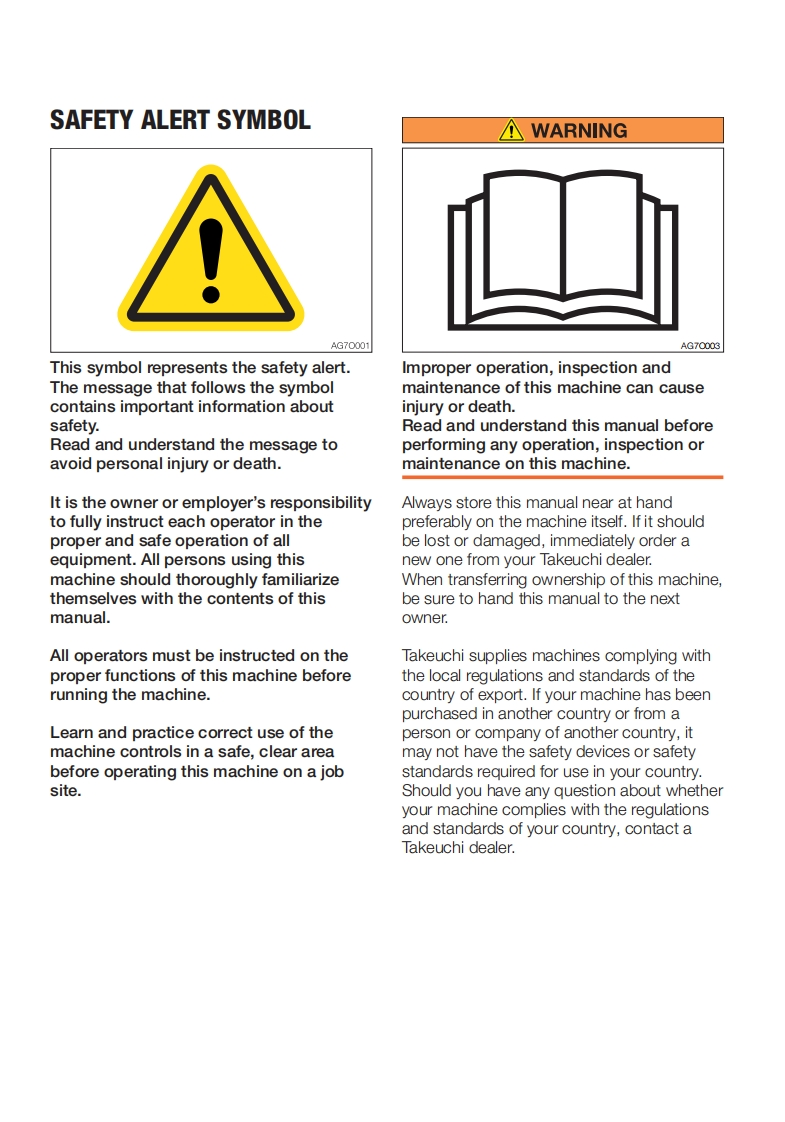 OPERATOR'S MANUALOriginal instructions8Serial No.200800002-Serial No.200900001~T10Serial No.201000002~T12Serial No.201200003-Book No.AU8E012OETL8 E-XMTRACK LOADERWARNING Read and understand these instructions.akeuCHIFailure to do so can cause injury or death.