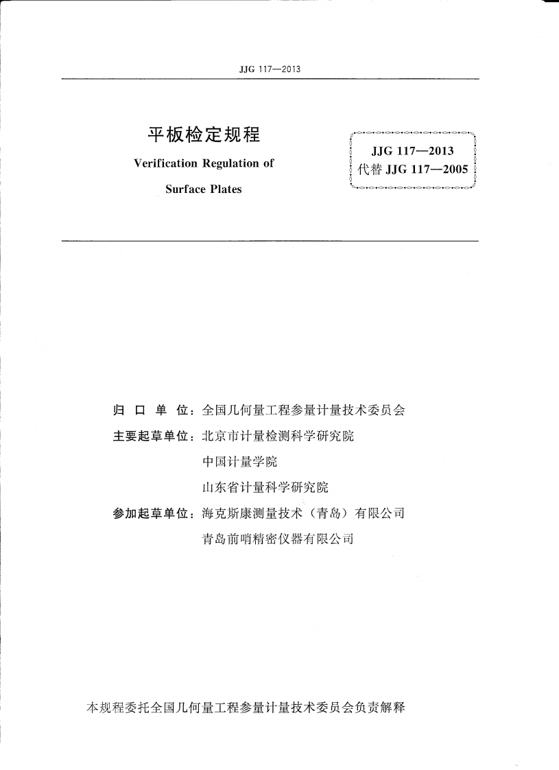 JJG117-2013平板检定规程348072@abc4个月前发布关注私信1.34MB37页045JJG117-2013平板检定规程此内容为付费资源,请付费后查看¥16¥23黄金会员免费钻石会员免费立即购买您当前未登录!建议登陆后购买,可保存购买订单付费资源 第1页 / 共37页 第2页 / 共37页 试读已结束,还剩35页,您可下载完整版后进行离线阅读 THE END标准规范 文本预览 可G中华人民共和国国家计量检定规程JJG117-2013平板Surface Plates2013-09-02发布2014-03-02实施国家质量监督检验检疫总局发布、线除添查真 查看更多 收起部分 喜欢就支持一下吧收藏