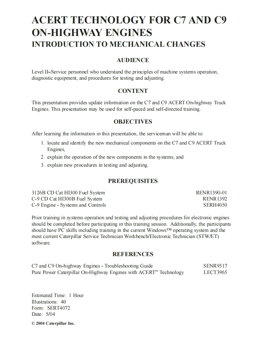 call Jahan Compressorh平wwLi/9wpas ulSERT4072CATERPILLAR▣贬▣May 2004SERVINGTECHNICAL PRESENTATIONACERTTM TECHNOLOGYFOR CZAND C9 ON-HIGHWAY ENGINESINTRODUCTION TO MECHANICAL CHANGES