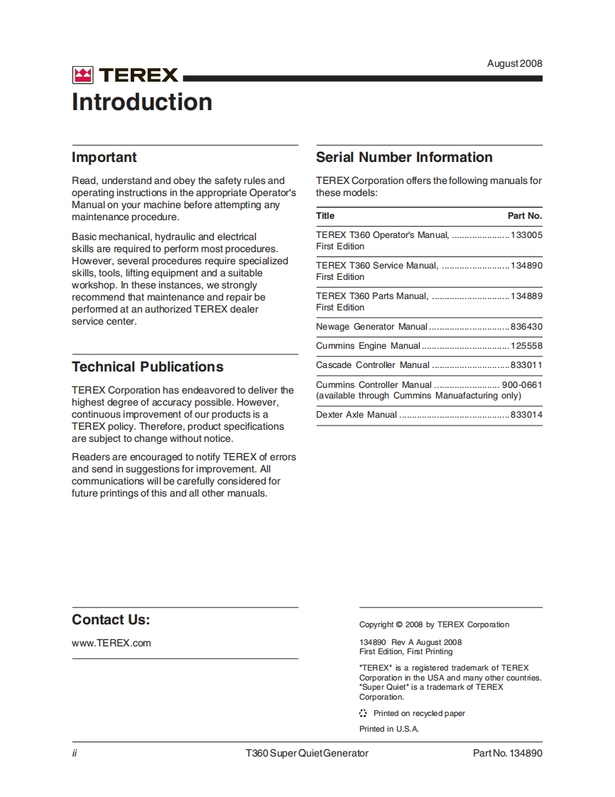 Terex-T360-维修操作说明书手册348072@abc3天前发布关注私信1.67MB38页041Terex-T360-维修操作说明书手册此内容为付费资源,请付费后查看¥59¥69黄金会员免费钻石会员免费立即购买您当前未登录!建议登陆后购买,可保存购买订单付费资源 第1页 / 共38页 第2页 / 共38页 试读已结束,还剩36页,您可下载完整版后进行离线阅读 THE END工程机械车辆 文本预览 凶TEREXService ManualT360@First EditionRev APart No.134890August 2008 查看更多 收起部分 喜欢就支持一下吧收藏