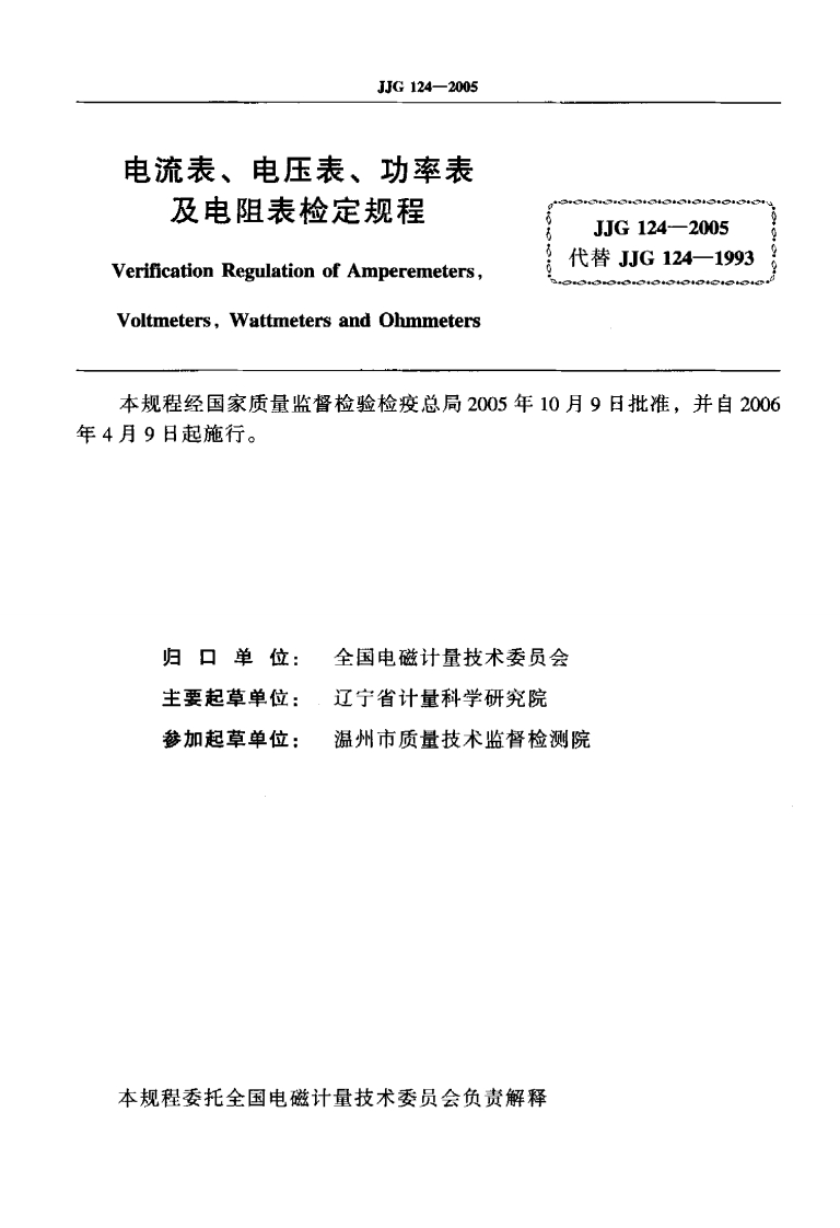 JJG124-2005电流表、电压表、功率表及电阻表348072@abc4个月前发布关注私信0.54MB26页036JJG124-2005电流表、电压表、功率表及电阻表此内容为付费资源,请付费后查看¥16¥23黄金会员免费钻石会员免费立即购买您当前未登录!建议登陆后购买,可保存购买订单付费资源 第1页 / 共26页 第2页 / 共26页 试读已结束,还剩24页,您可下载完整版后进行离线阅读 THE END标准规范 文本预览 市G中华人民共和国国家计量检定规程JJG124-2005电流表、电压表、功率表及电阻表Amperemeters,Voltmeters,Wattmeters and(Ohmmeters2005一10-09发布2006-04-09实施国家质量监督检验检疫总局发布 查看更多 收起部分 喜欢就支持一下吧收藏