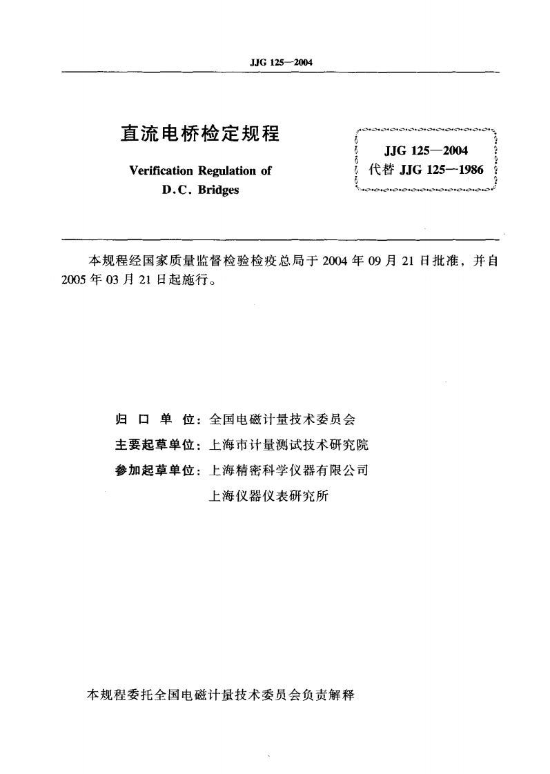 JJG125-2004直流电桥1348072@abc4个月前发布关注私信0.83MB32页026JJG125-2004直流电桥1此内容为付费资源,请付费后查看¥16¥23黄金会员免费钻石会员免费立即购买您当前未登录!建议登陆后购买,可保存购买订单付费资源 第1页 / 共32页 第2页 / 共32页 试读已结束,还剩30页,您可下载完整版后进行离线阅读 THE END标准规范 文本预览 可G中华人民共和国国家计量检定规程JJG125-2004直流电桥D.C.Bridges2004-09-21发布2005-03-21实施国家质量监督检验检疫总局发布 查看更多 收起部分 喜欢就支持一下吧收藏