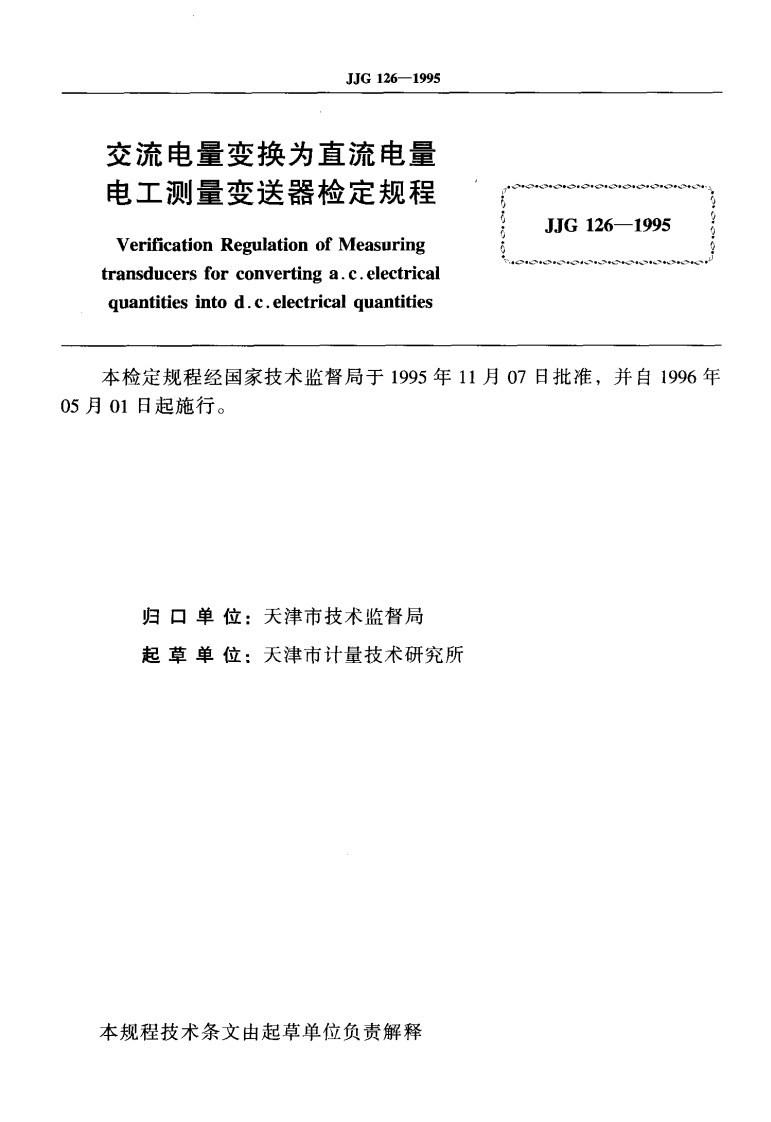 JJG126-1995交流电量变换为直流电量电工测量变送器1348072@abc4个月前发布关注私信0.58MB31页035JJG126-1995交流电量变换为直流电量电工测量变送器1此内容为付费资源,请付费后查看¥16¥23黄金会员免费钻石会员免费立即购买您当前未登录!建议登陆后购买,可保存购买订单付费资源 第1页 / 共31页 第2页 / 共31页 试读已结束,还剩29页,您可下载完整版后进行离线阅读 THE END标准规范 文本预览 可G中华人民共和国国家计量检定规程JJG126一1995交流电量变换为直流电量电工测量变送器Measuring transducers for converting a.c.electricalquantities into d.c.electrical quantities1995-11-07发布1996-05-01实施国家技术监督局发布 查看更多 收起部分 喜欢就支持一下吧收藏