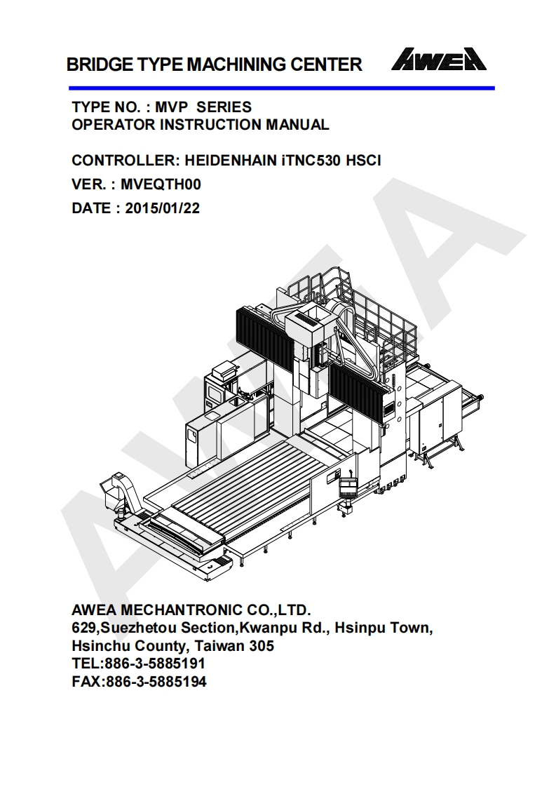 AWEA MVP iTNC530 HSCI OPERATOR INSTRUCTION MANUAL VER.MVEQTH00 DATE:2015/1/22 AWEA