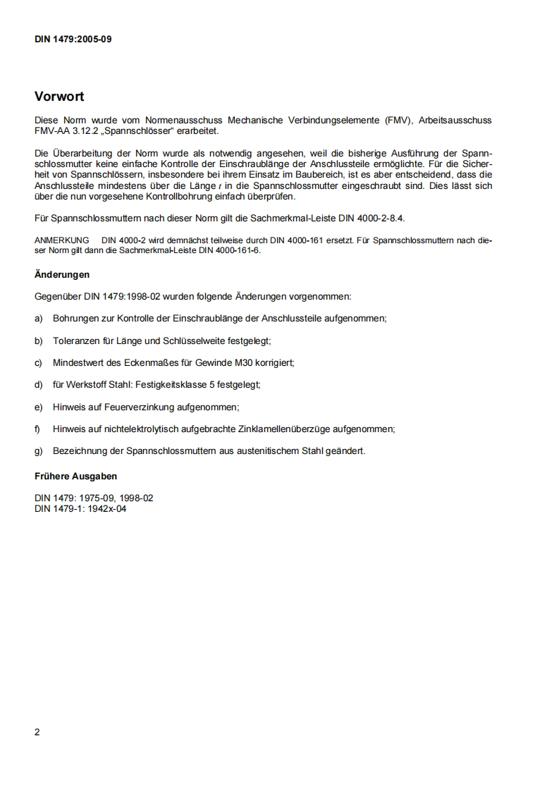 DEUTSCHE NORMSeptember 2005DIN 1479DIN1CS21.060.20:21.060.70Ersatz furD1N1479:1998-02Sechskant-SpannschlossmutternHexagon turnbucklesLanterne hexagonale de tendeurGesamtumfang 6 SeitenNormenausschuss Mechanische Verbindungselemente(FMV)im DIN