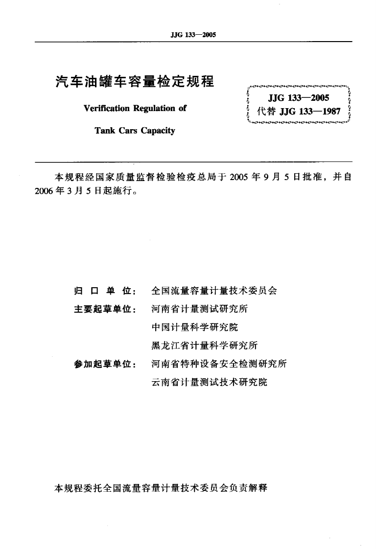 JJG133-2005汽车油罐车容量348072@abc4个月前发布关注私信0.25MB15页046JJG133-2005汽车油罐车容量此内容为付费资源,请付费后查看¥16¥23黄金会员免费钻石会员免费立即购买您当前未登录!建议登陆后购买,可保存购买订单付费资源 第1页 / 共15页 第2页 / 共15页 试读已结束,还剩13页,您可下载完整版后进行离线阅读 THE END标准规范 文本预览 可G中华人民共和国国家计量检定规程JJG133-2005汽车油罐车容量Tank Cars Capacity2005-09-05发布2006-03-05实施国家质量监督检验检疫总局发布 查看更多 收起部分 喜欢就支持一下吧收藏