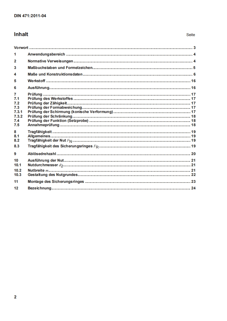 DEUTSCHE NORMApril 2011DIN 471DIN1CS21.060.60;21.120.10Ersatz furD1N471:1981-09Sicherungsringe(Halteringe)fur Wellen-Regelausfuhrung und schwere AusfuhrungRetaining rings for shafts-Normal type and heavy typeAnneaux d'arret pour arbres-Type standard et type robusteGesamtumfang 24 SeitenNormenausschuss Mechanische Verbindungselemente(FMV)im DIN