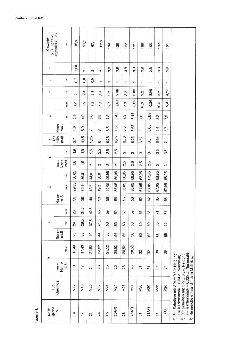 DK621.882.443DEUTSCHE NORMApril 1990ScheibenDINvierkant,keilfǒrmigfur HV-Schrauben an U-Profilen in Stahlkonstruktionen6918Square taper washers for U-sections for high-tensile structural boltingErsatz fur Ausgabe 02.90Plaquette oblique pour profiles en U pour vis a serrage controlepour constructions metalliquesMaBe in mm1 AnwendungsbereichScheiben nach dieser Norm sind fur HV-Schrauben nach DIN 6914 und Sechskantmuttern nach DIN 6915 bestimmt,die imStahlbau bei GV-und SL-Verbindungen nach DIN 18 800 Teil 1 mit U-Profilen verwendet werden.2 MaBeAa bun450Kennzeichen HV(auf Unterseite】目zB目zAHVHerstellerzeichen-(auf Unterseite)】BbEingewalzte Rillen zur Kennzeichnung der Neigung(auf Oberseite)t)Neigung8%±0,5%:zwei RillenNeigung 5%0,5%:ohne Rillen,Formbuchstabe A in der BezeichnungFortsetzung Seite 2 und 3NormenausschuB Mechanische Verbindungselemente (FMV)im DIN Deutsches Institut fur Normung e.V.Alleinverkauf der Normen durch Beuth Verlag GmbH.BurggrafenstraBe 6,1000 Berlin 30DIN 6918 Apr 1990 Preisgr.504,90aVertr.-Nr.0005