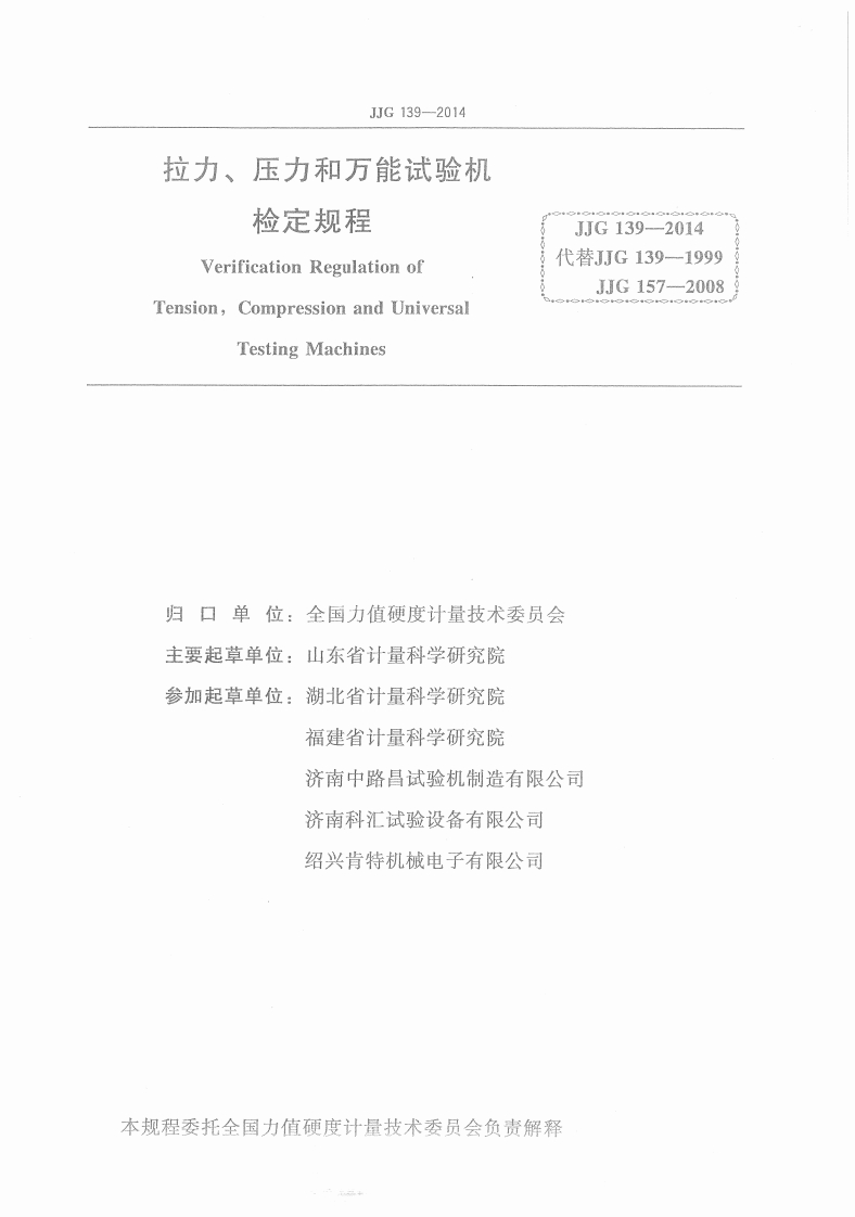 JJG139-2014拉力、压力和万能试验机348072@abc4个月前发布关注私信7.20MB18页040JJG139-2014拉力、压力和万能试验机此内容为付费资源,请付费后查看¥16¥23黄金会员免费钻石会员免费立即购买您当前未登录!建议登陆后购买,可保存购买订单付费资源 第1页 / 共18页 第2页 / 共18页 试读已结束,还剩16页,您可下载完整版后进行离线阅读 THE END标准规范 文本预览 可了G中华人民共和国国家计量检定规程JJG139-2014拉力、压力和万能试验机Tension,Compression and UniversalTesting Machines2014-08-01发布2015-02-01实施国家质量监督检验检疫总局发布 查看更多 收起部分 喜欢就支持一下吧收藏