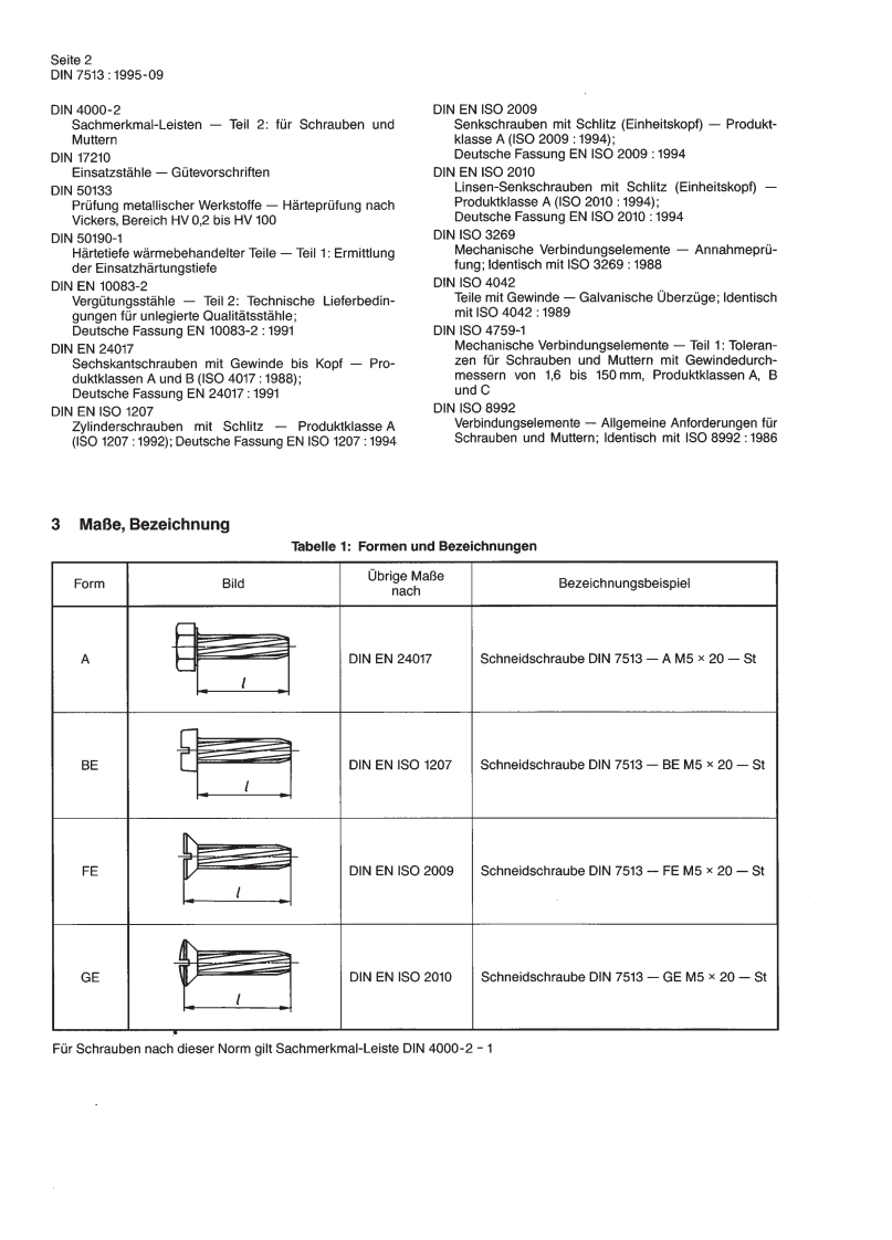 DEUTSCHE NORMSeptember 1995Gewinde-SchneidschraubenSechskantschraubenNSchlitzschraubenAnforderungenPrufung7513MaBe1CS21.060.10Ersatz fur Ausgabe 1986-11Deskriptoren:Schraube,Sechskantschraube,Schlitzschraube,mechanisches VerbindungselementThread cutting screws-hexagon screws and slotted head screws;dimensions,requirements,testingVis auto-taraudeuses-vis a tete hexagonale,vis a tete fendue;dimensions,exigences,essaiVorwortDiese Norm wurde vom FMV-3.3 erarbeitet.AnderungenGegenuber der Ausgabe November 1986 wurden folgende Anderungen vorgenommen:a)Die in Bezug genommenen DIN-Normen (MaBnormen)wurden durch DIN-EN-Normen bzw.DIN-EN-ISO-Normen ersetzt.b)Die Formbuchstaben(Ausnahme Form A)wurden durch das Zeichen"E"erganzt.c)Die maximale Kernharte wurde auf 370 HV reduziert.d)Die Norm wurde redaktionell uberarbeitet.Fruhere AusgabenD1N7513:1943x-08,1956-05,1968-03,1971-08,1986-111 Anwendungsbereich2 Normative VerweisungenDiese Norm gilt fur warmebehandelte Gewinde-Schneid-Diese Norm enthalt durch datierte oder undatierte Verwei-schrauben (Sechskantschrauben und Schlitzschrauben)sungen Festlegungen aus anderen Publikationen.Diesemit metrischem ISO-Gewinde nach DIN 13-12,die schragnormativen Verweisungen sind an den jeweiligen Stellen imzur Schraubenachse angeordnete Schneidnuten besitzenText zitiert,und die Publikationen sind nachstehend aufge-und mit diesen sowie mit einem entsprechend gestaltetenfuhrt.Bei datierten Verweisungen gehoren spatere Ande-Gewindeende bei Montage ihr Gegengewinde selbstrungen oder Uberarbeitungen dieser Publikationen nur zuschneiden konnen.Fur die Kopfformen der Schraubendieser Norm,falls sie durch Anderung oder Uberarbeitunggelten die entsprechenden DIN-Normen nach Abschnitt 3.eingearbeitet sind.Bei undatierten Verweisungen gilt dieFur allgemeine Anforderungen gilt DIN ISO 8992;fur dieletzte Ausgabe der in Bezug genommenen Publikation.Annahmeprufung geltendie GrundsatzenachD1N13-12D1NIS03269.Metrisches ISO-Gewinde -Teil 12:Regel-und Fein-Schrauben nach dieser Norm sollen ihr Gegengewindegewinde von 1 bis 300 mm Durchmesser,Auswahl furselbst schneiden konnen.ohne daB sich die SchraubenDurchmesser und Steigungenverformen oder ein Bruch der Schrauben eintritt,sofernD1N13-15keine Uberbeanspruchungen auftreten.Deshalb geltenMetrisches ISO-Gewinde Teil 15:GrundabmaBeals Hauptmerkmale fur die Beurteilung der mechanischenund Toleranzen fur Gewinde ab 1 mm Durchmesserund funktionellen Eigenschaften einer Gewinde-Schneid-DN1654-3schraubeKaltstauch-und KaltflieBpreBstahle -Teil 3:Techni--die Randharte,sche Lieferbedingungen fur Einsatzstahle-das Mindestbruchdrehmoment,DIN1654-4-die Mindestbruchkraft,Kaltstauch-und KaltflieBpreBstahle -Teil 4:Techni-das erzeugte Gewinde.sche Lieferbedingungen fur VergutungsstahleFortsetzung Seite 2 bis 5NormenausschuB Mechanische Verbindungselemente(FMV)im DIN Deutsches Institut fur Normung e.V.DIN Deutsches Institut fur Normung e.V..Jede Art der Vervielfaltigung,auch auszugsweise,Ref.Nr..DlN7513:1995-0