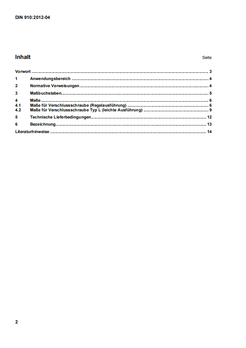 DEUTSCHE NORMApril 2012DIN 910DIN1CS21.060.10Ersatz furD1N910:1992-01Verschlussschrauben mit Bund und AuBensechskant-Zylindrisches GewindeHexagon head screw plugs with collar-Cylindrical threadBouchons filetes a collerette et a tete hexagonale-Filetage cylindriqueGesamtumfang 14 SeitenNormenausschuss Mechanische Verbindungselemente(FMV)im DIN