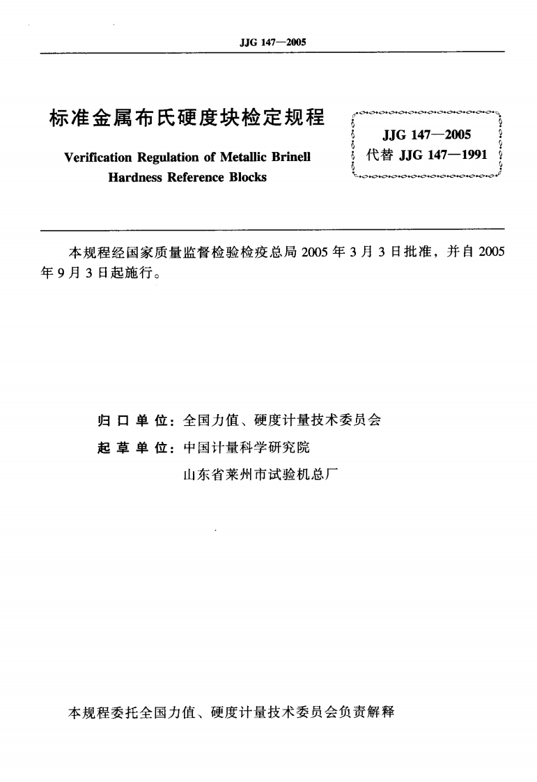 JJG147-2005标准金属布氏硬度块348072@abc4个月前发布关注私信0.29MB14页043JJG147-2005标准金属布氏硬度块此内容为付费资源,请付费后查看¥16¥23黄金会员免费钻石会员免费立即购买您当前未登录!建议登陆后购买,可保存购买订单付费资源 第1页 / 共14页 第2页 / 共14页 试读已结束,还剩12页,您可下载完整版后进行离线阅读 THE END标准规范 文本预览 可灯G中华人民共和国国家计量检定规程JJG147-2005标准金属布氏硬度块Metallic Brinell Hardness Reference Blocks2005-03-03发布2005-09-03实施国家质量监督检验检疫总局发布 查看更多 收起部分 喜欢就支持一下吧收藏
