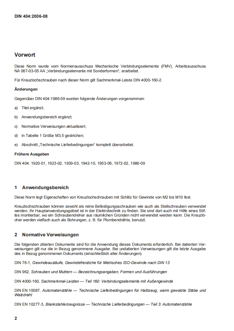 DEUTSCHE NORMAugust 2006DIN 404DIN1CS21.060.10Ersatz furD1N404:1986-09Kreuzlochschrauben mit SchlitzSlotted capstan screwsVis a tete cylindrique bombe fendue avec percage a croixGesamtumfang 5 SeitenNormenausschuss Mechanische Verbindungselemente(FMV)im DIN