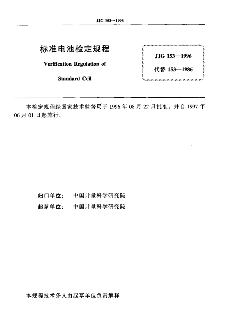 JJG153-1996标准电池348072@abc4个月前发布关注私信0.33MB14页036JJG153-1996标准电池此内容为付费资源,请付费后查看¥16¥23黄金会员免费钻石会员免费立即购买您当前未登录!建议登陆后购买,可保存购买订单付费资源 第1页 / 共14页 第2页 / 共14页 试读已结束,还剩12页,您可下载完整版后进行离线阅读 THE END标准规范 文本预览 可可G中华人民共和国国家计量检定规程JJG153一1996标准电池Standard Cell1996-08-22发布1997-06-01实施国家技术监督局发布 查看更多 收起部分 喜欢就支持一下吧收藏