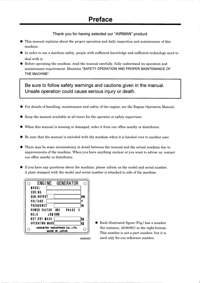 airman-genset-sdg100s_3a5_100as_3a6_e8_instruction-manual安装调试说明书手册348072@abc12天前发布关注私信1.31MB66页041airman-genset-sdg100s_3a5_100as_3a6_e8_instruction-manual安装调试说明书手册此内容为付费资源,请付费后查看¥35¥39黄金会员免费钻石会员免费立即购买您当前未登录!建议登陆后购买,可保存购买订单付费资源 第1页 / 共66页 第2页 / 共66页 试读已结束,还剩64页,您可下载完整版后进行离线阅读 THE END工控机电 文本预览 ARMANINSTRUCTION MANUALENGINE GENERATORSDG100S-3A5SDG100AS-3A6(DOUBLE VOLTAGE TYPE)Please be sure to read this manualbefore using this machine.HOKUETSU INDUSTRIES CO.,LTD. 查看更多 收起部分 喜欢就支持一下吧收藏