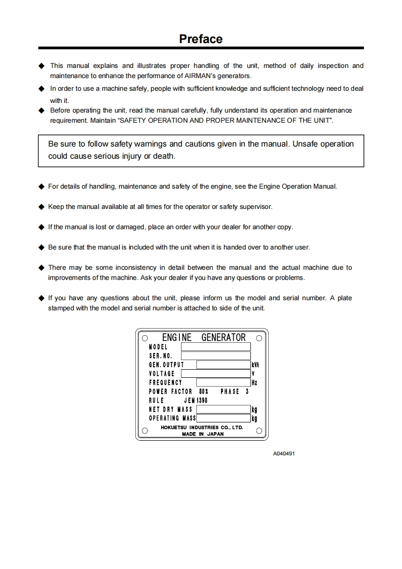 airman-genset-sdg60s_3a6_e1_instruction-manual安装调试说明书手册348072@abc11天前发布关注私信1.69MB58页022airman-genset-sdg60s_3a6_e1_instruction-manual安装调试说明书手册此内容为付费资源,请付费后查看¥35¥39黄金会员免费钻石会员免费立即购买您当前未登录!建议登陆后购买,可保存购买订单付费资源 第1页 / 共58页 第2页 / 共58页 试读已结束,还剩56页,您可下载完整版后进行离线阅读 THE END工控机电 文本预览 AIRMANINSTRUCTION MANUAL SDG60S-3A6INSTRUCTION MANUALENGINE GENERATORSDG60S-3A6(DOUBLE VOLTAGE TYPE)Please be sure to read this manualbefore using this machine.HOKUETSU INDUSTRIES CO.,LTD. 查看更多 收起部分 喜欢就支持一下吧收藏