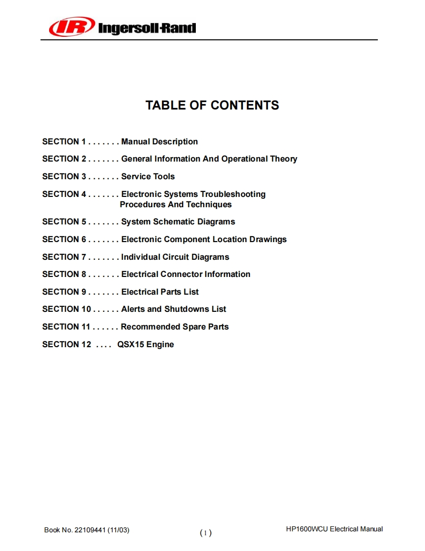 Ingersoll-RandELECTRICAL/ELECTRONICSERVICE MANUAL FORHP1300WCUHP1600WCUDoosan purchased Bobcat Company from Ingersol-Rand Company inR2007.Any reference to Ingersoll-Rand Company or use of prademarksIngersoll Randservice marks,logos or other proprietary identyying marks belongingto Ingersoll-Rand Company in this manual is historical or nominativePortable Powerin natre,and is not meant to suggest a current cffilkation betweenP.O.Box 868-501 Sanford AveIngersoll-Rand Company and Doosan Company or the products ofMocksville,N.C.27028www.portablepower.irco.comBook No.22109441(11/03)Revised (10-12)