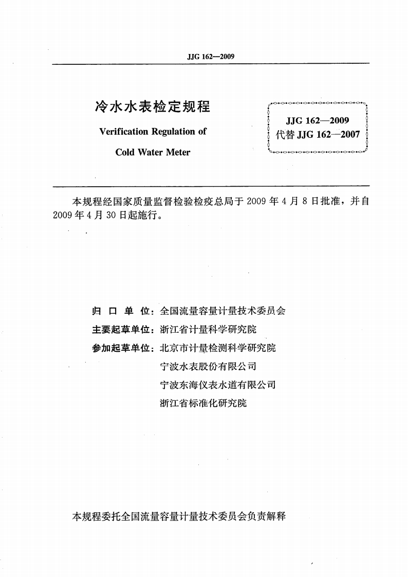 JJG162-2009冷水水表348072@abc4个月前发布关注私信2.37MB91页031JJG162-2009冷水水表此内容为付费资源,请付费后查看¥16¥23黄金会员免费钻石会员免费立即购买您当前未登录!建议登陆后购买,可保存购买订单付费资源 第1页 / 共91页 第2页 / 共91页 试读已结束,还剩89页,您可下载完整版后进行离线阅读 THE END标准规范 文本预览 J可G中华人民共和国国家计量检定规程JJG162-2009冷水水表Cold Water Meter2009-04-08发布2009-04-30实施国家质量监督检验检疫总局发布 查看更多 收起部分 喜欢就支持一下吧收藏