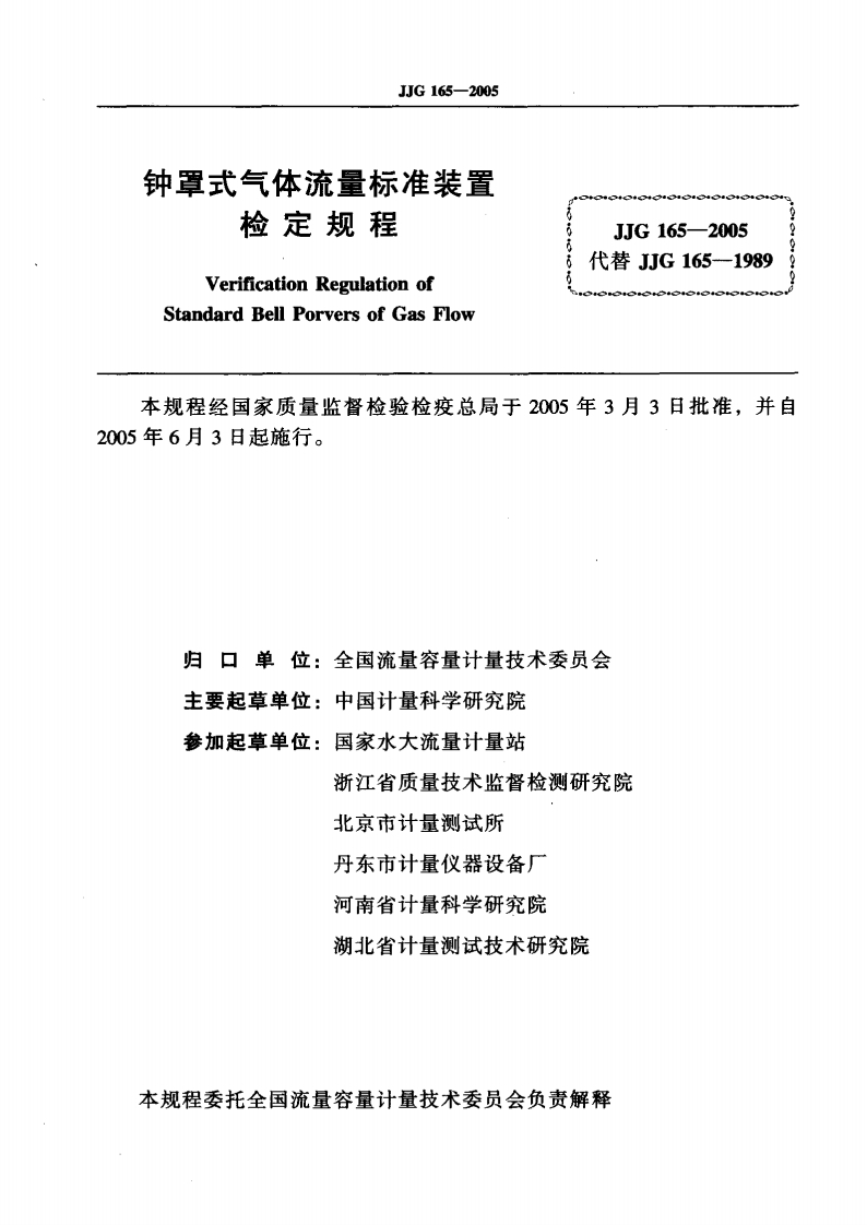JJG165-2005钟罩式气体流量标准装置348072@abc6个月前发布关注私信0.57MB23页050JJG165-2005钟罩式气体流量标准装置此内容为付费资源,请付费后查看¥16¥23黄金会员免费钻石会员免费立即购买您当前未登录!建议登陆后购买,可保存购买订单付费资源 第1页 / 共23页 第2页 / 共23页 试读已结束,还剩21页,您可下载完整版后进行离线阅读 THE END标准规范 文本预览 可G中华人民共和国国家计量检定规程JJG165-2005钟罩式气体流量标准装置Standard Bell Porvers of Gas Flow2005-03-03发布2005-06-03实施国家质量监督检验检疫总局发布 查看更多 收起部分 喜欢就支持一下吧收藏