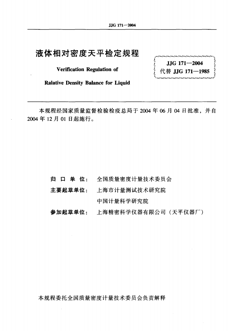 JJG171-2004液体相对密度天平348072@abc4个月前发布关注私信0.33MB15页030JJG171-2004液体相对密度天平此内容为付费资源,请付费后查看¥16¥23黄金会员免费钻石会员免费立即购买您当前未登录!建议登陆后购买,可保存购买订单付费资源 第1页 / 共15页 第2页 / 共15页 试读已结束,还剩13页,您可下载完整版后进行离线阅读 THE END标准规范 文本预览 可可G中华人民共和国国家计量检定规程JJG171一2004液体相对密度天平Ralative Density Balance for Liquid2004-06-04发布2004-12-01实施国家质量监督检验检疫总局发布 查看更多 收起部分 喜欢就支持一下吧收藏