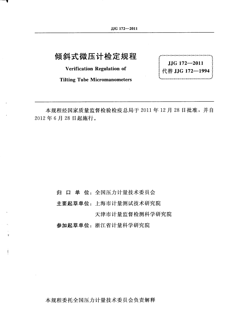 JJG172-2011倾斜式微压计348072@abc4个月前发布关注私信1.63MB15页032JJG172-2011倾斜式微压计此内容为付费资源,请付费后查看¥16¥23黄金会员免费钻石会员免费立即购买您当前未登录!建议登陆后购买,可保存购买订单付费资源 第1页 / 共15页 第2页 / 共15页 试读已结束,还剩13页,您可下载完整版后进行离线阅读 THE END标准规范 文本预览 可可g中华人民共和国国家计量检定规程JJG172-2011倾斜式微压计Tilting Tube Micromanometers2011-12-28发布2012-06-28实施国家质量监督检验检疫总局发布 查看更多 收起部分 喜欢就支持一下吧收藏