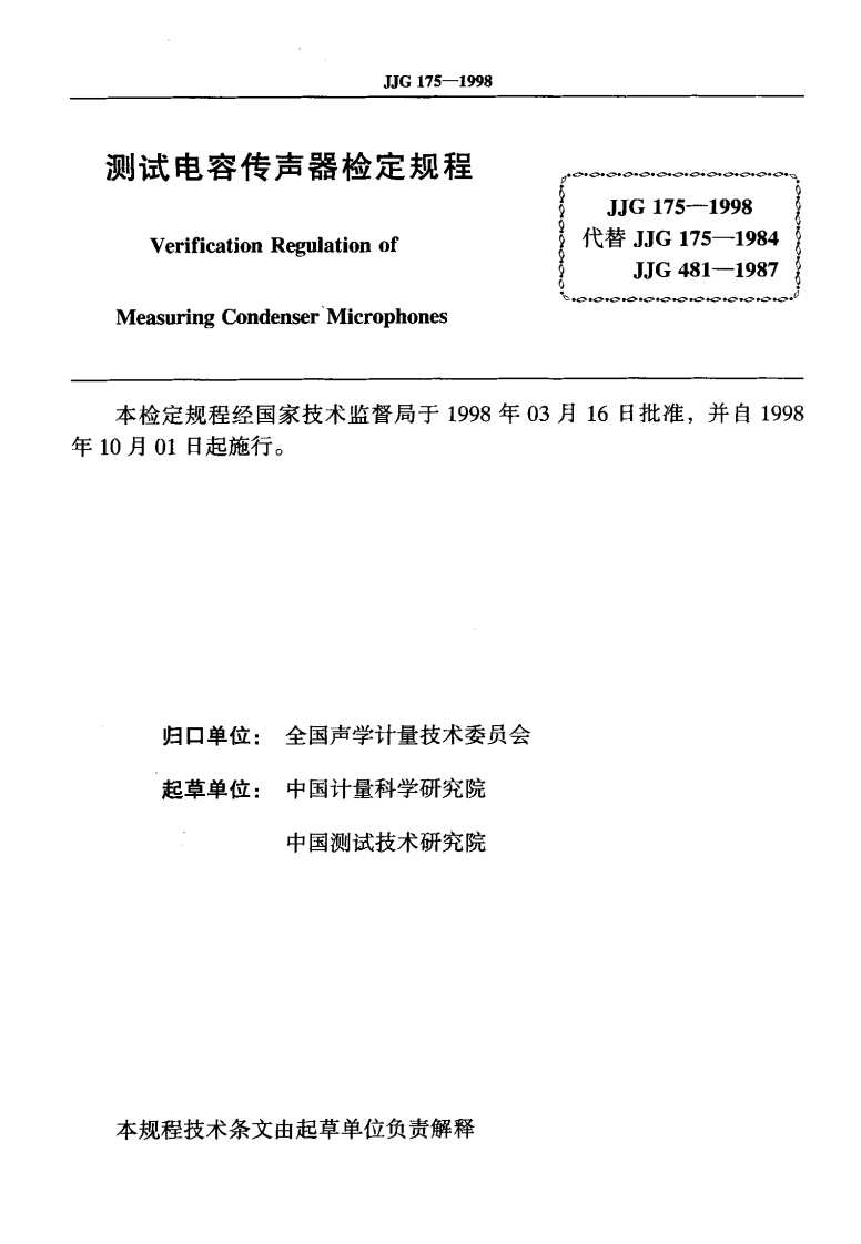 JJG175-1998测试电容传声器348072@abc4个月前发布关注私信0.30MB15页050JJG175-1998测试电容传声器此内容为付费资源,请付费后查看¥16¥23黄金会员免费钻石会员免费立即购买您当前未登录!建议登陆后购买,可保存购买订单付费资源 第1页 / 共15页 第2页 / 共15页 试读已结束,还剩13页,您可下载完整版后进行离线阅读 THE END标准规范 文本预览 可可G中华人民共和国国家计量检定规程JJG175-1998测试电容传声器Measuring Condenser Microphones1998-03-16发布1998-10-01实施国家技术监督局发布 查看更多 收起部分 喜欢就支持一下吧收藏