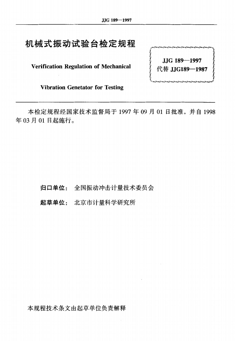 JJG189-1997机械式振动试验台348072@abc4个月前发布关注私信0.29MB13页022JJG189-1997机械式振动试验台此内容为付费资源,请付费后查看¥16¥23黄金会员免费钻石会员免费立即购买您当前未登录!建议登陆后购买,可保存购买订单付费资源 第1页 / 共13页 第2页 / 共13页 试读已结束,还剩11页,您可下载完整版后进行离线阅读 THE END标准规范 文本预览 可G中华人民共和国国家计量检定规程JJG189-1997机械式振动试验台Mechanical Vibration Genetator for Testing1997-09-01发布1998-03-01实施国家技术监督局发布 查看更多 收起部分 喜欢就支持一下吧收藏